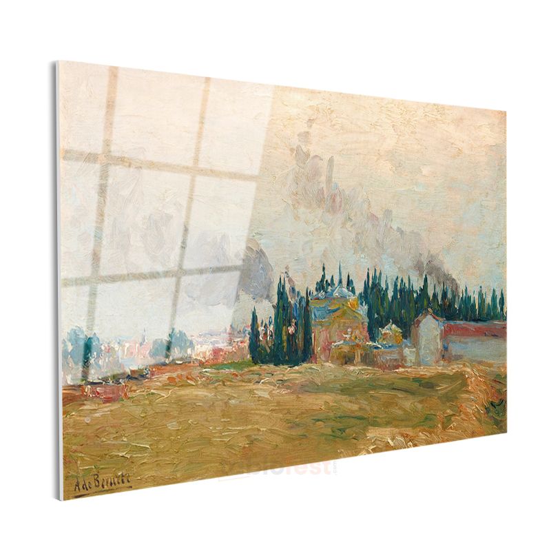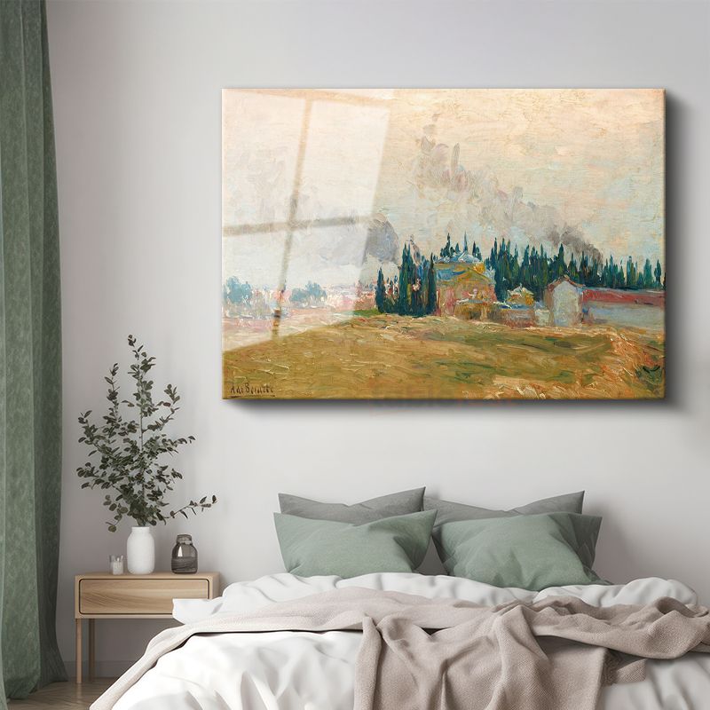 Albert Braut - Servi Ağaçlı Kır Manzarası Cam Tablo