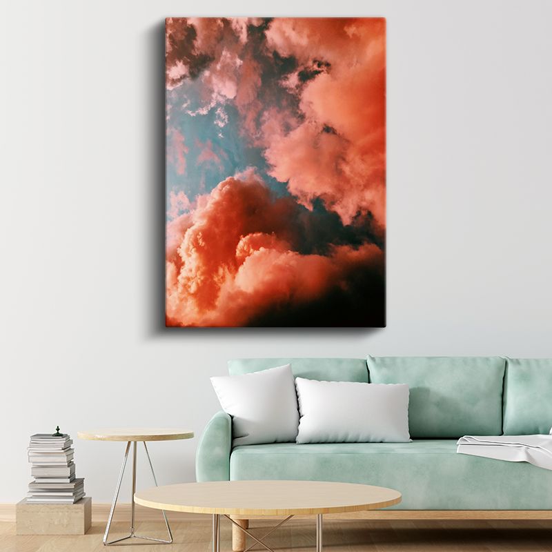 Alev Bulutları - Kızıl Gökyüzü Manzarası Kanvas Tablo