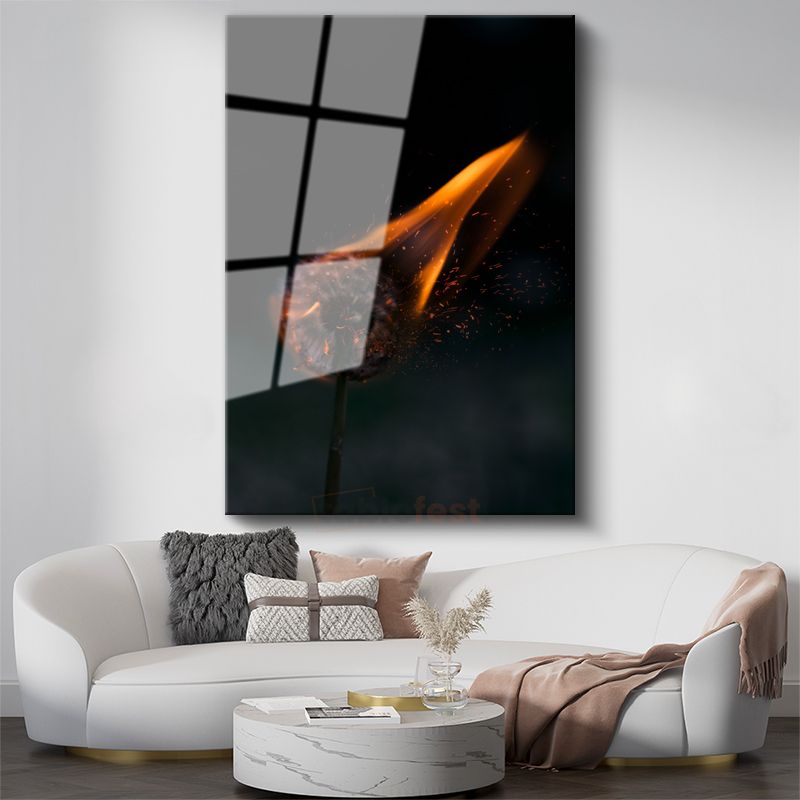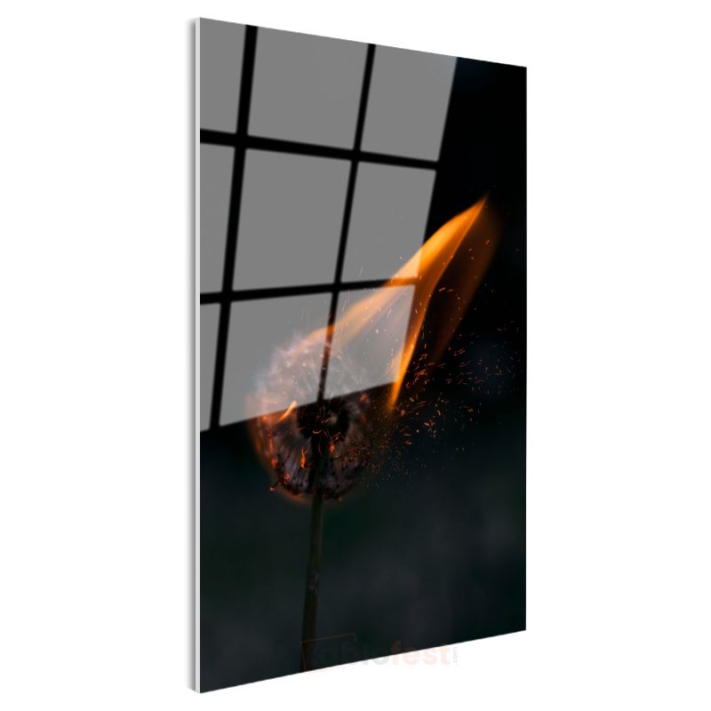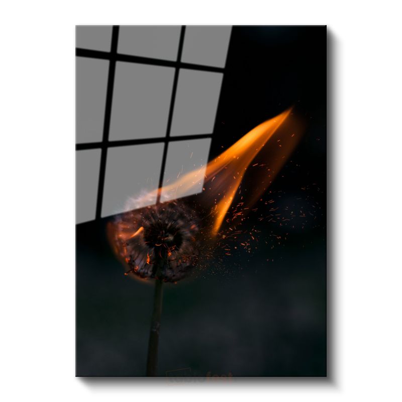 Alev Çiçeği - Dramatik Yanmakta Olan Karahindiba Cam Tablo