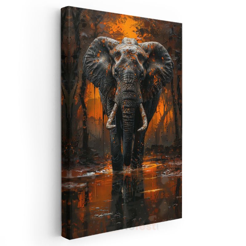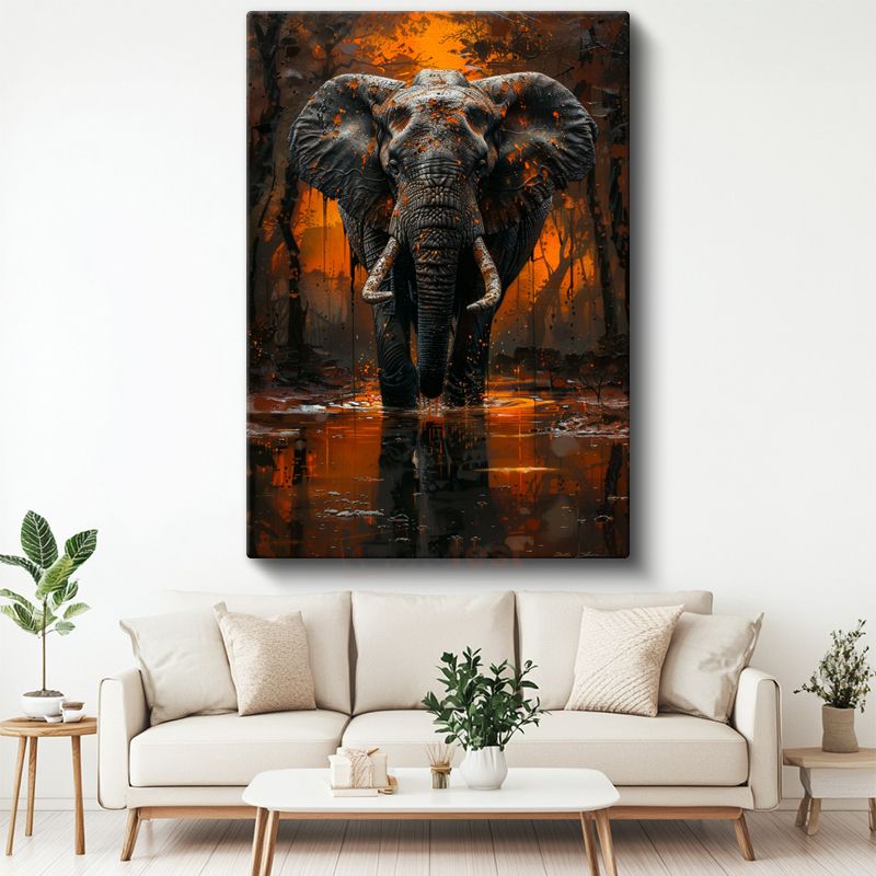 Alev Fil - Turuncu Sularda Yürüyen Heybetli Memeli Kanvas Tablo