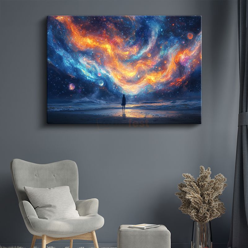 Alev Gökyüzü - Evrenin Renkleriyle Dans Eden Silüet Kanvas Tablo