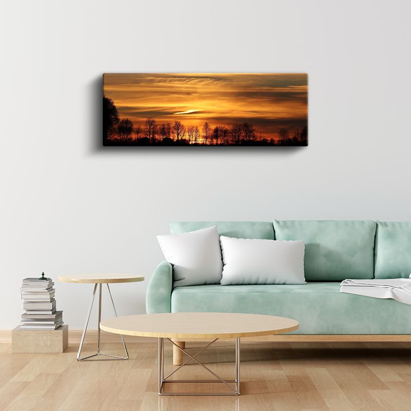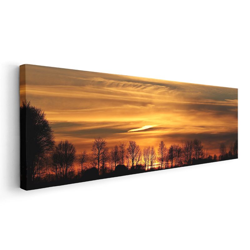 Alev Gökyüzü - Gün Batımında Ağaç Siluetleri Kanvas Tablo