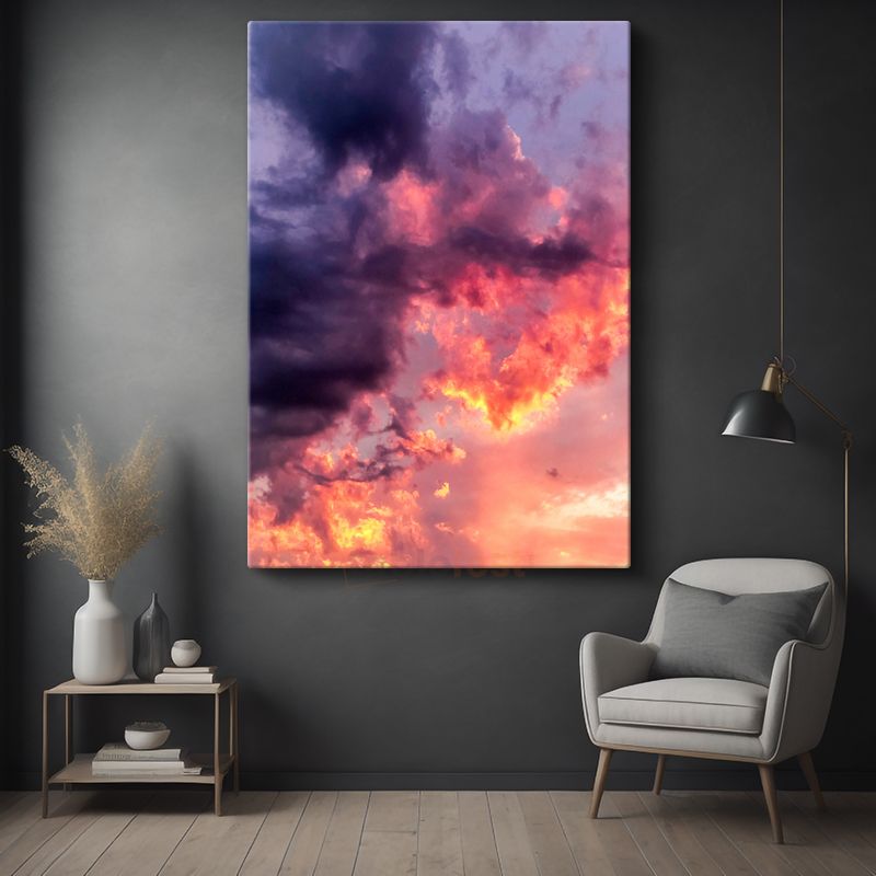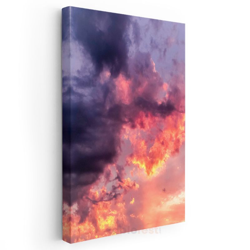 Alev Gökyüzü - Mor Bulutlar Arasında Gün Batımı Kanvas Tablo