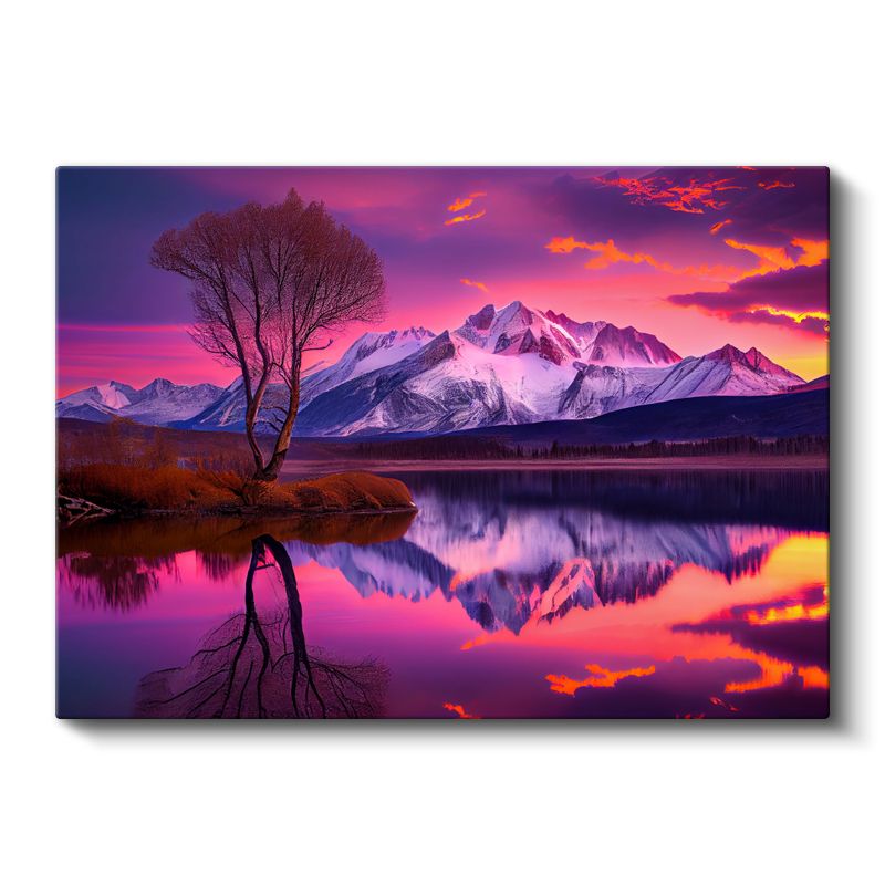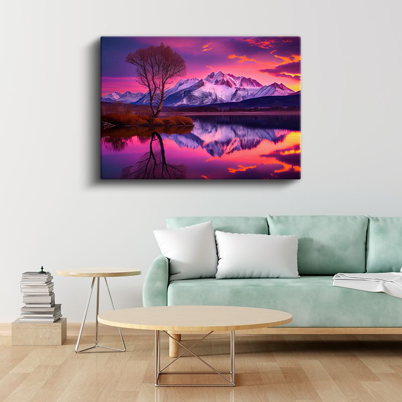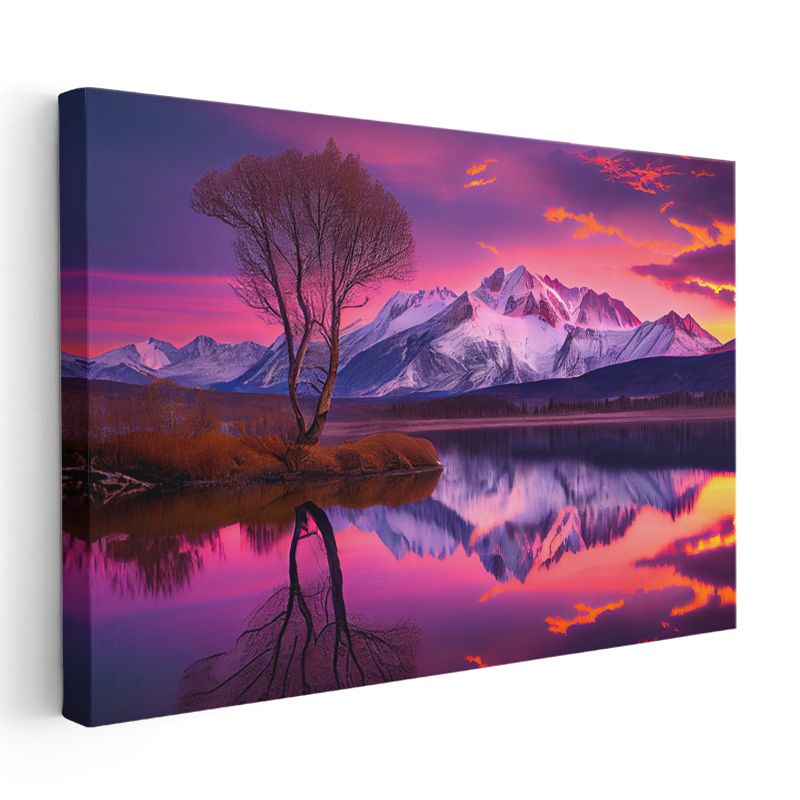 Alev Gökyüzü - Mor Tonlarda Gün Batımı ve Dağ Silüeti Kanvas Tablo