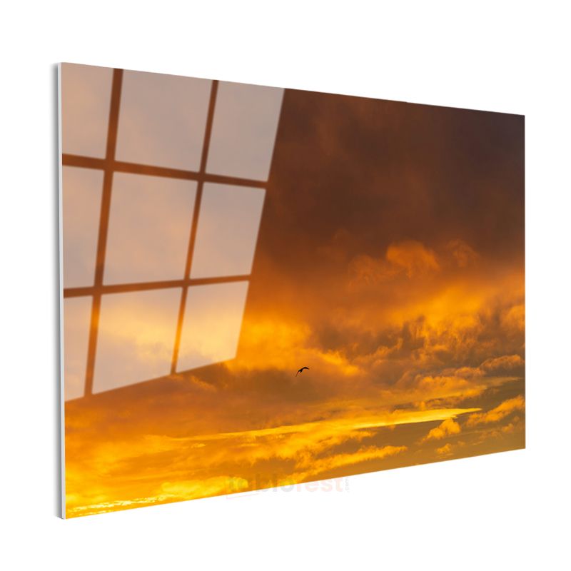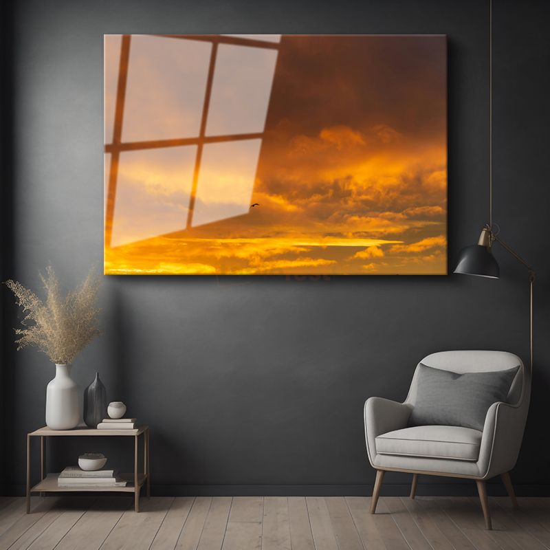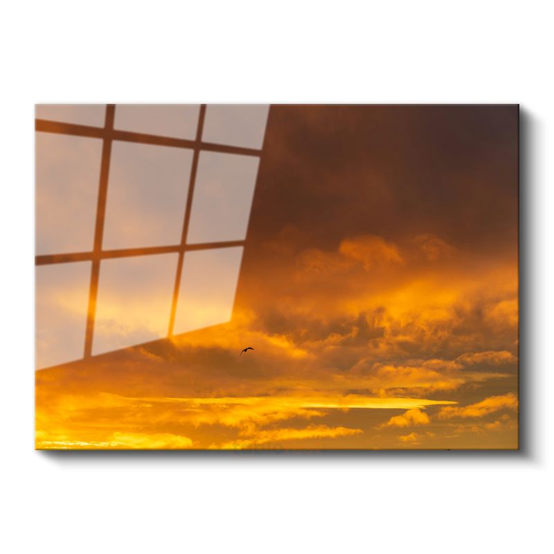 Alev Gökyüzü - Turuncu Tonlarda Büyüleyici Gün Batımı Cam Tablo