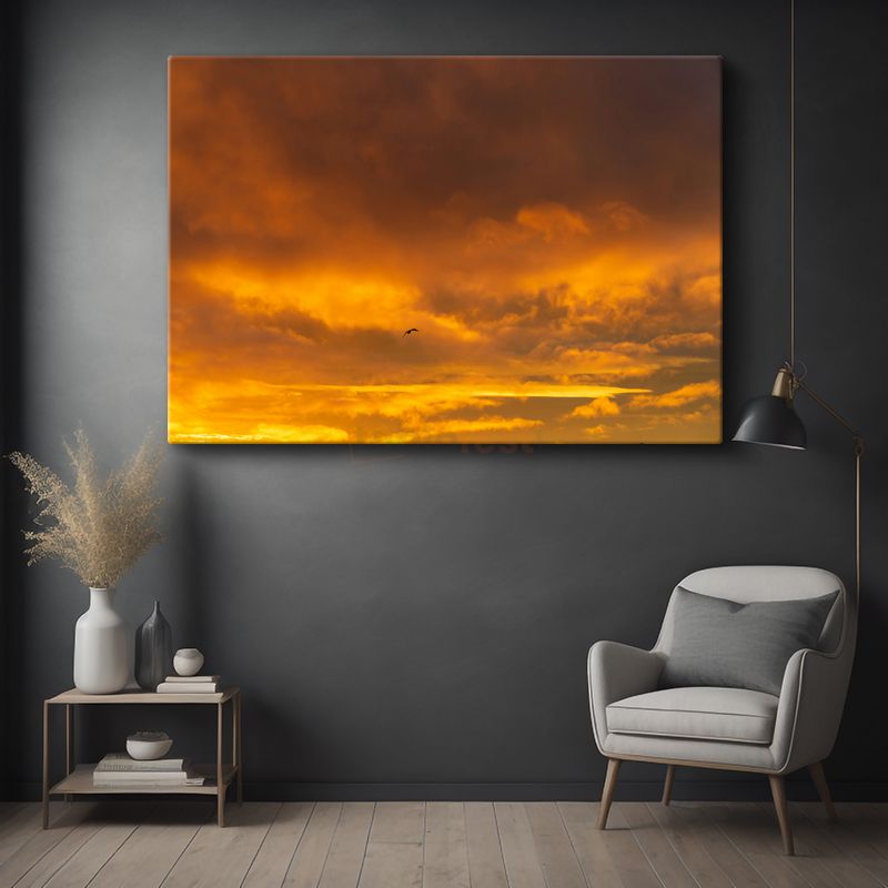 Alev Gökyüzü - Turuncu Tonlarda Büyüleyici Gün Batımı Kanvas Tablo