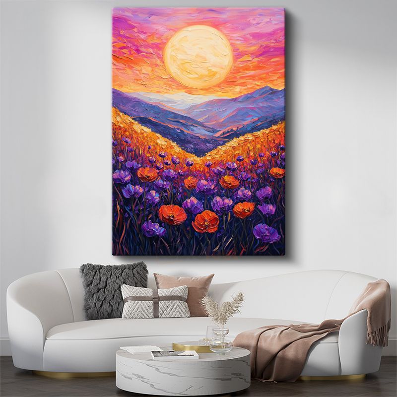 Alev Günbatımı - Dağ Manzarasında Gelincik Tarlası Kanvas Tablo