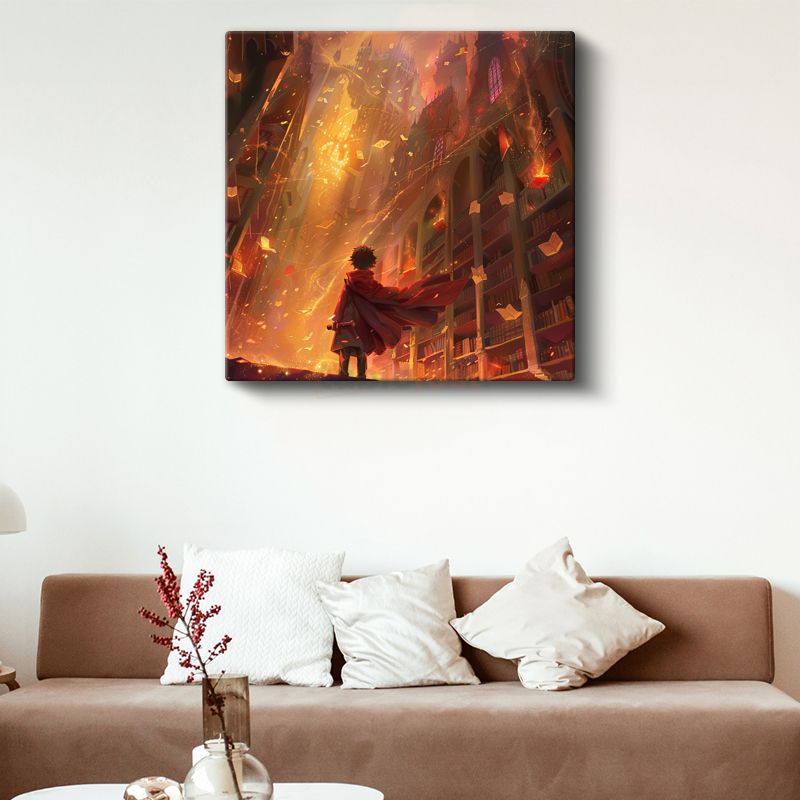 Alev Kütüphanesi - Kırmızı Pelerin Anime Kanvas Tablo