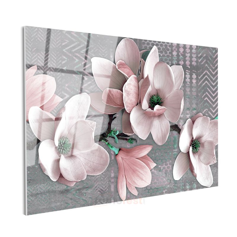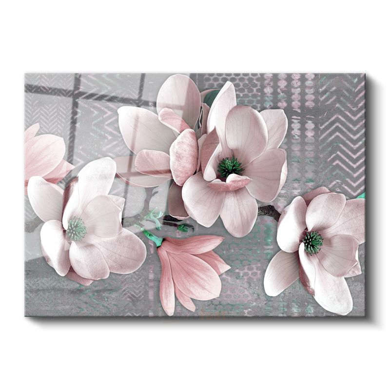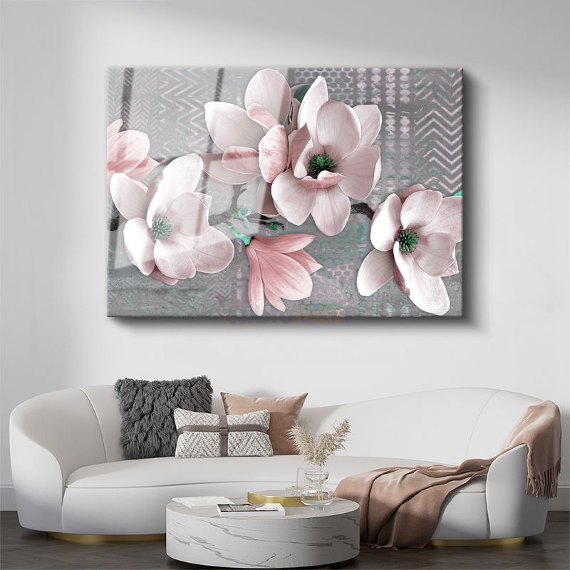 Alev Laleler - Yeşil Bahçede Turuncu Kırmızı Çiçek Topluluğu Cam Tablo