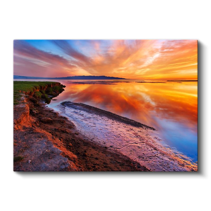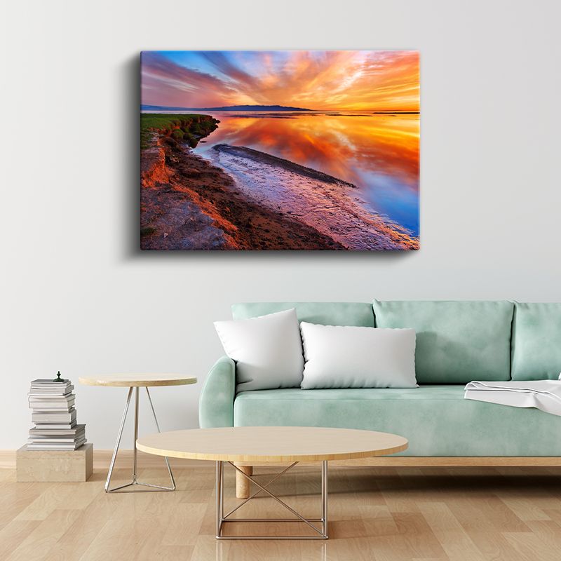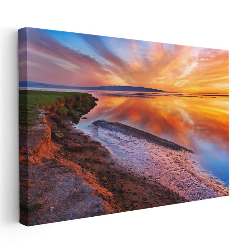 Alev Renkli Gün Batımı - Sahilde Altın Yansımalar Kanvas Tablo