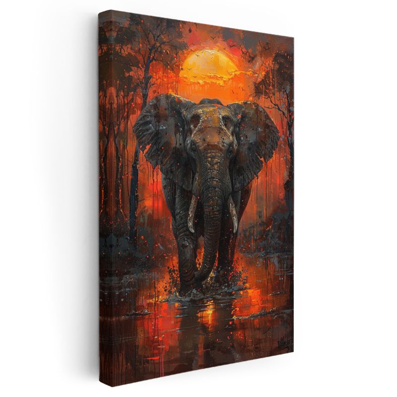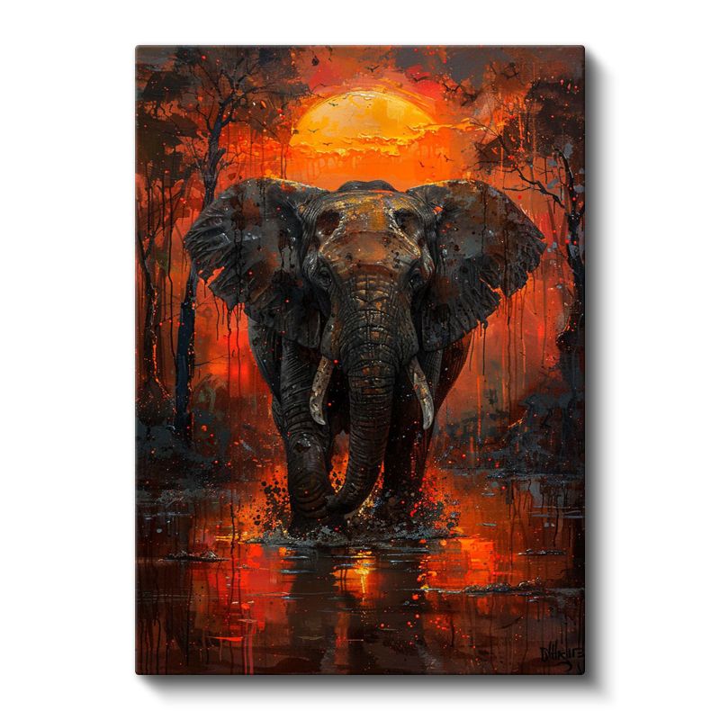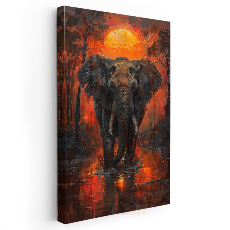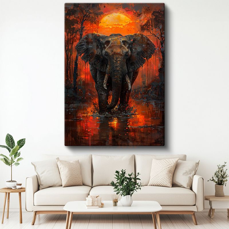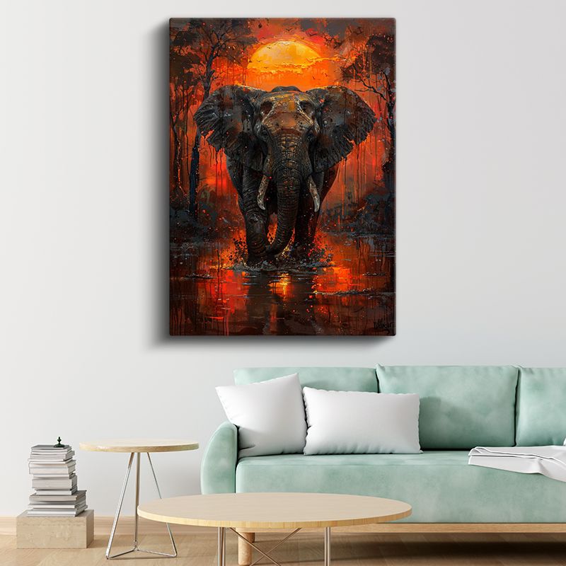 Alev Tonlarında Fil - Heybetli Afrika Kralının Dramatik Portresi Kanvas Tablo