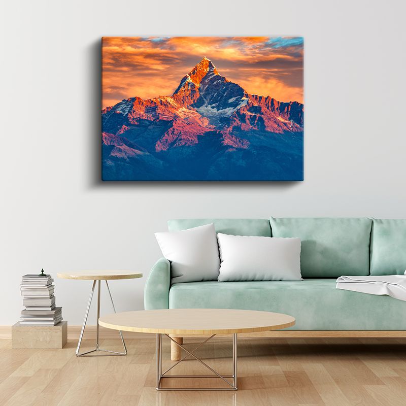 Alev Zirvesi - Gün Batımında Dağ Silüeti Kanvas Tablo