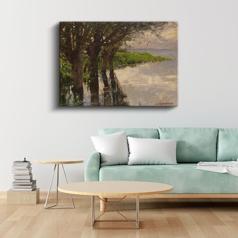 Alexander Koester - Göl Kenarında Ağaçlar Kanvas Tablo