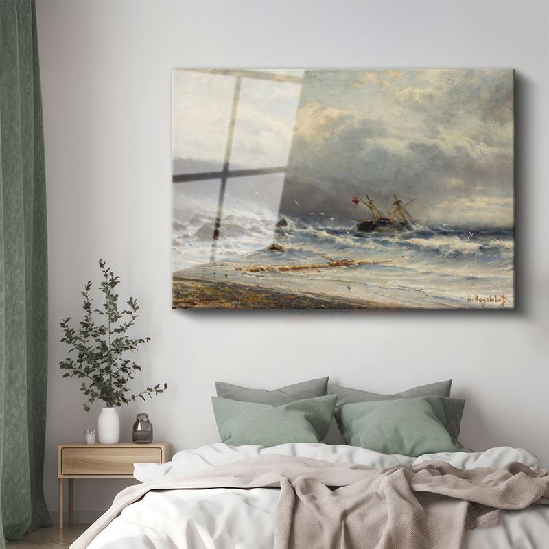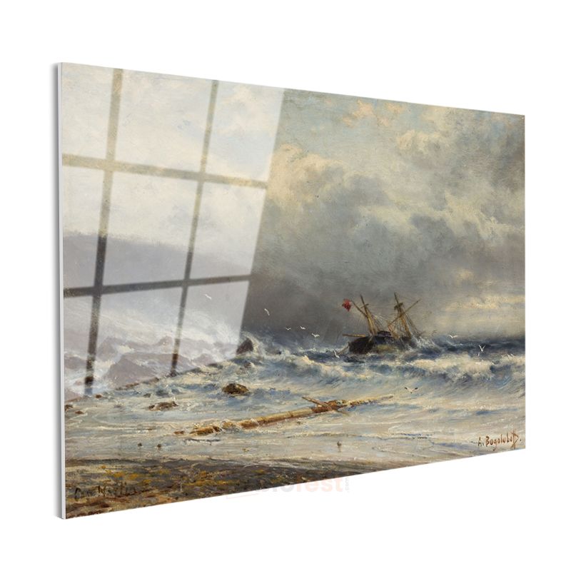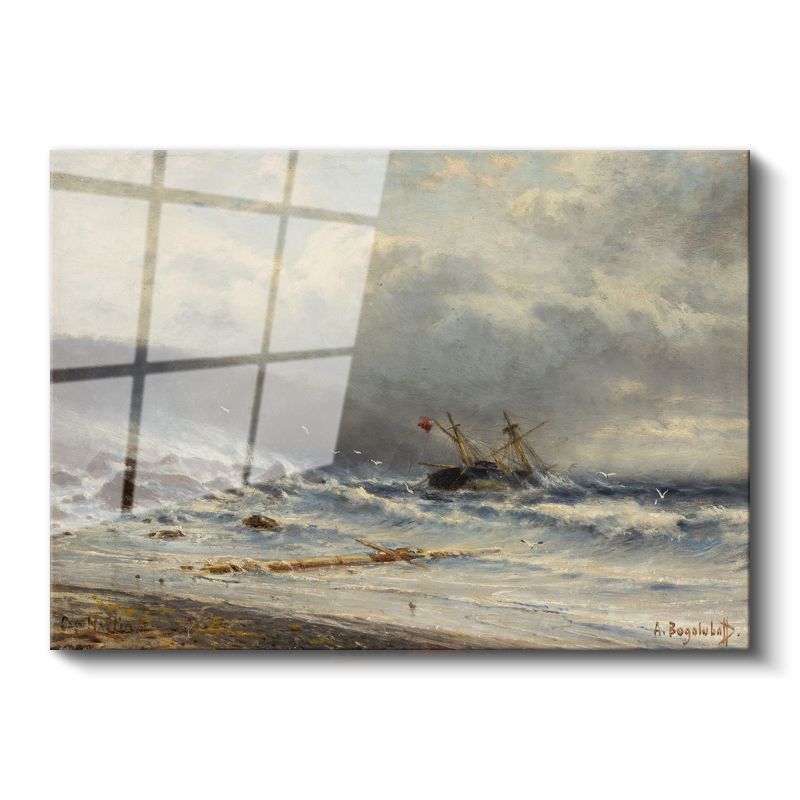 Alexei Petrovich Bogolubov - Fırtınalı Denizde Gemi Cam Tablo