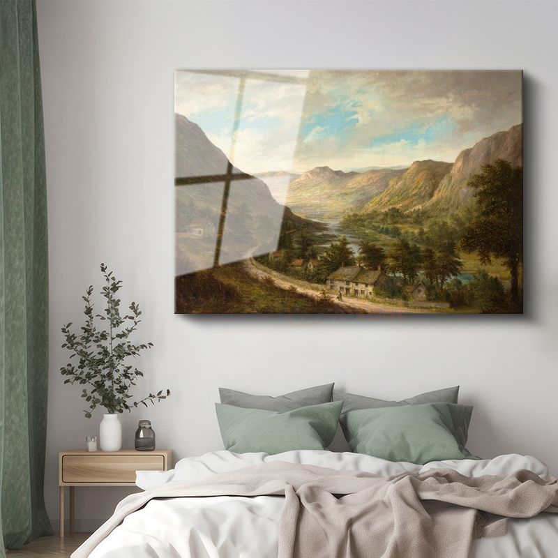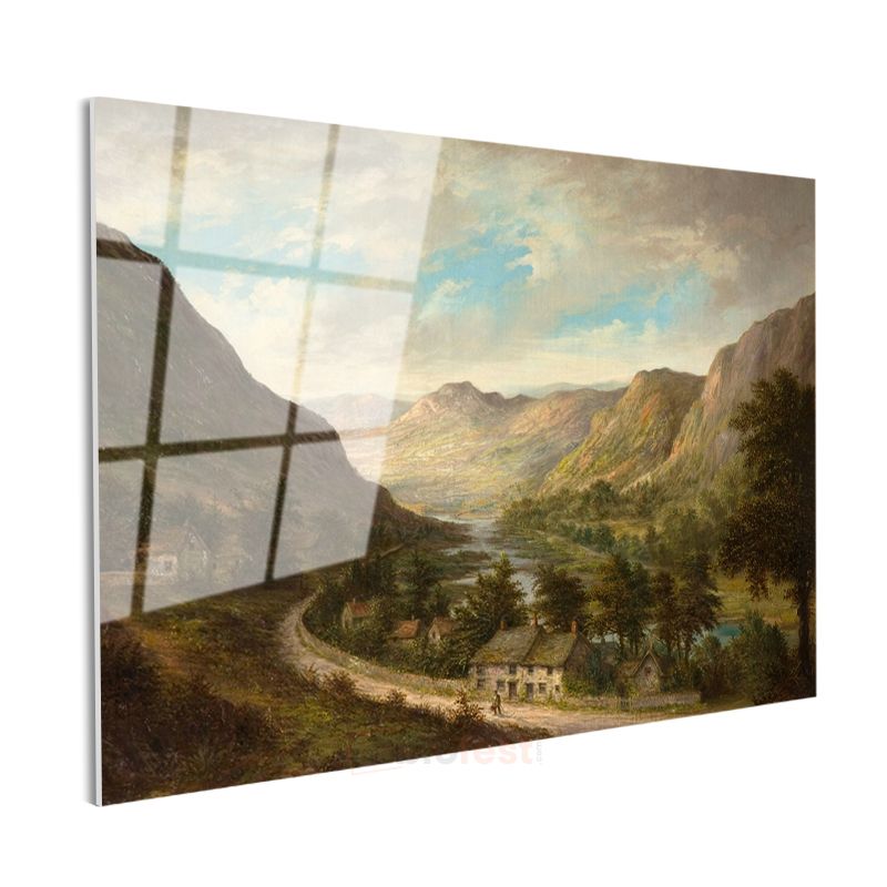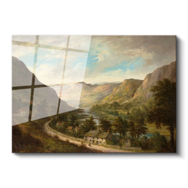 Alfred de Breanski - Dağ Vadisi Yerleşimi Cam Tablo