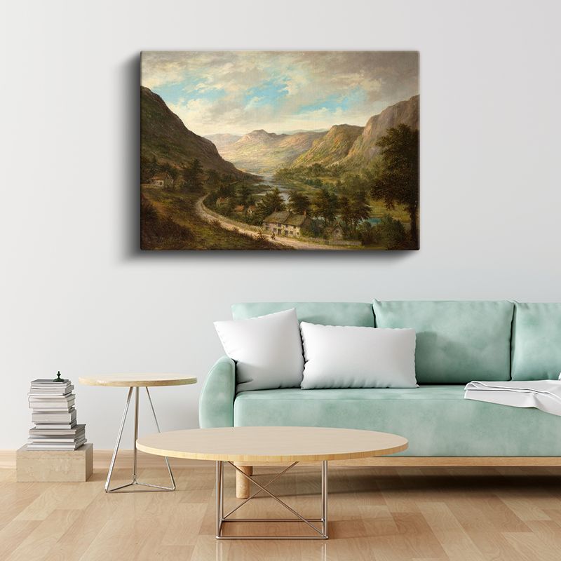 Alfred de Breanski - Dağ Vadisi Yerleşimi Kanvas Tablo