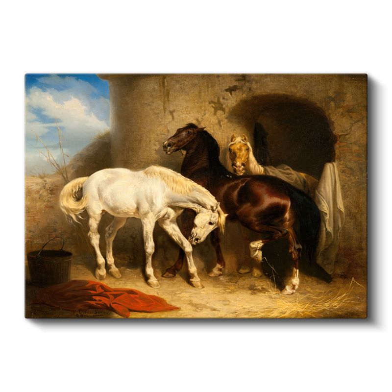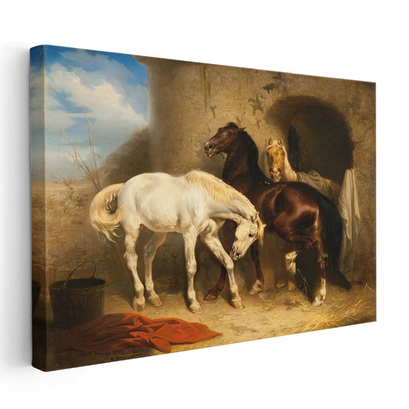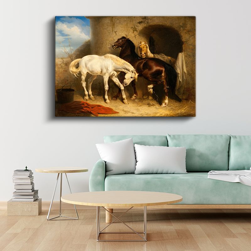 Alfred Wörle - Ahırdaki Atlar Kanvas Tablo