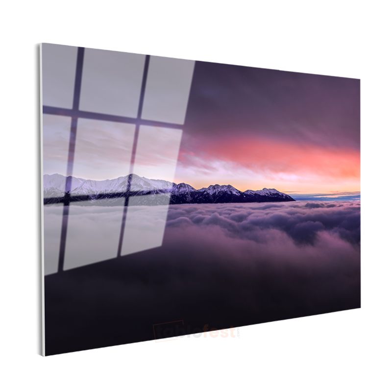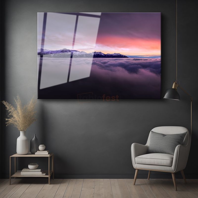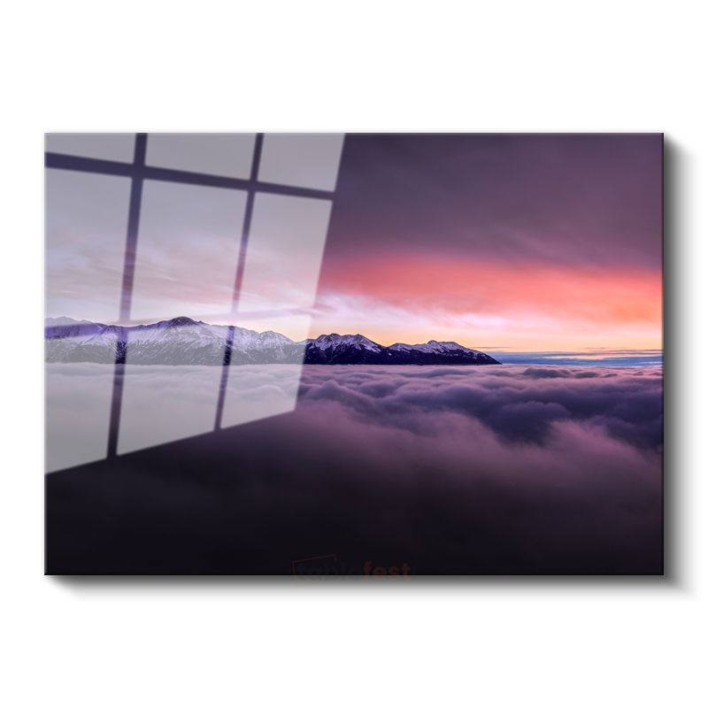 Alp Dağları - Bulutların Üzerinde Gün Batımı Cam Tablo