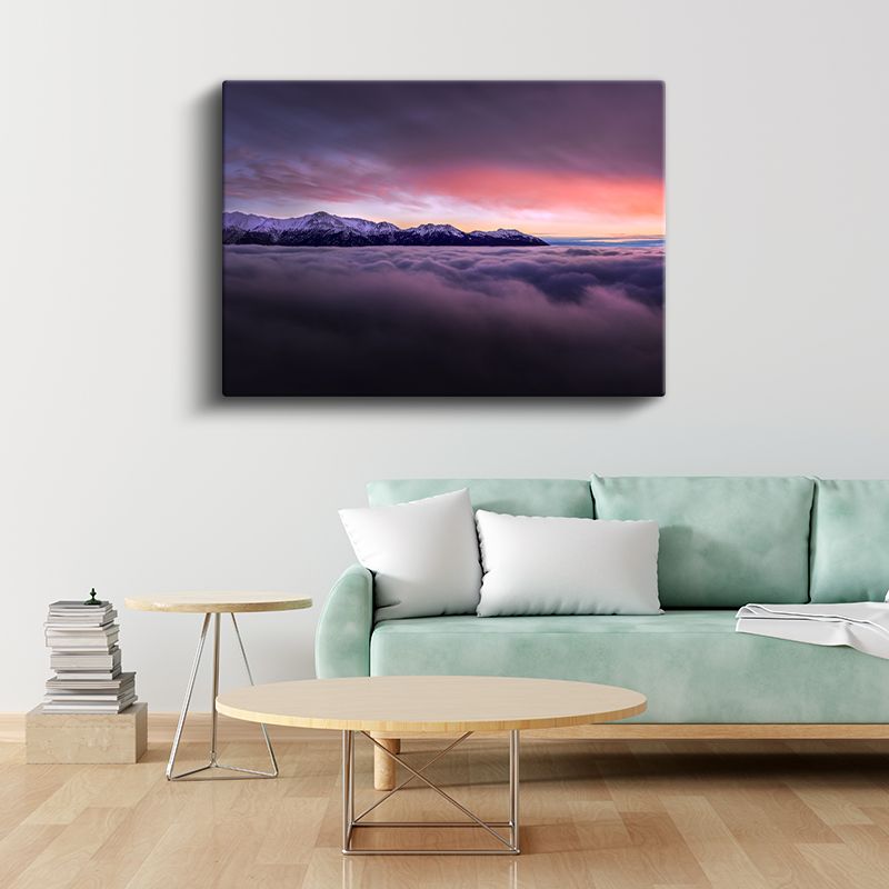 Alp Dağları - Bulutların Üzerinde Gün Batımı Kanvas Tablo