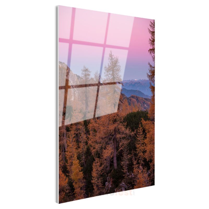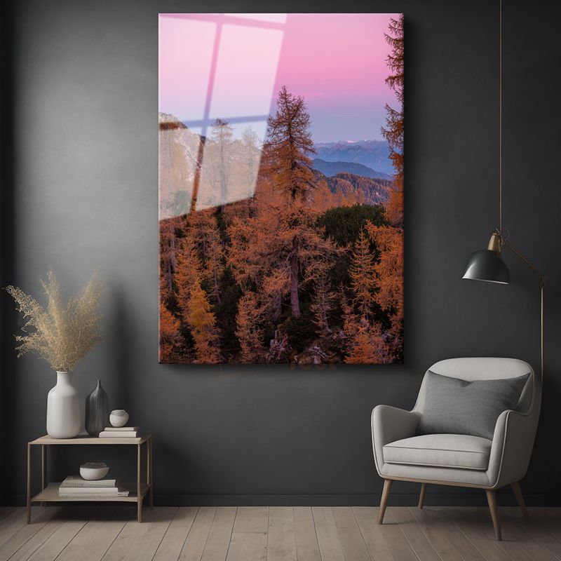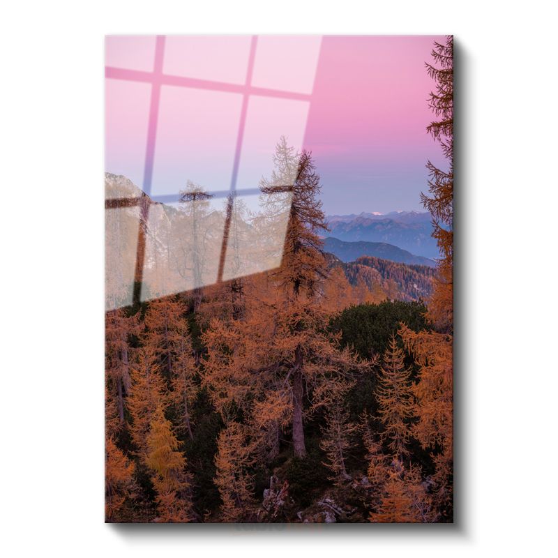 Alp Dağları - Sonbahar Renkleri ve Pembe Gökyüzü Cam Tablo