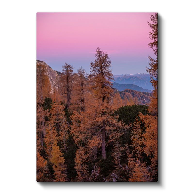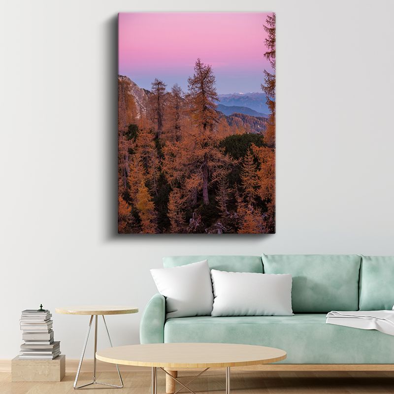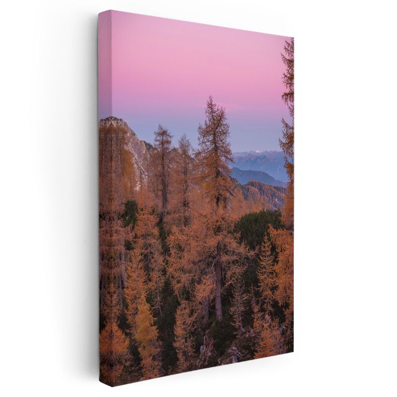Alp Dağları - Sonbahar Renkleri ve Pembe Gökyüzü Kanvas Tablo