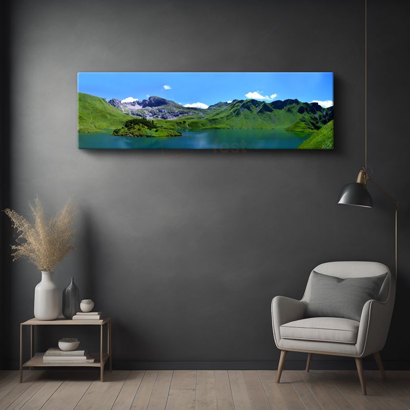 Alp Gölü - Dağlar Arasında Turkuaz Su Manzarası Kanvas Tablo