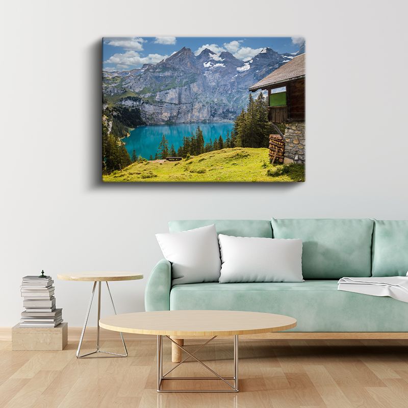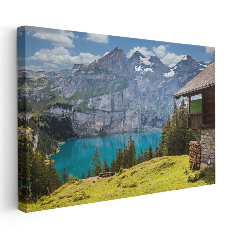 Alp Gölü - Turkuaz Sular ve Karlı Dağlar Kanvas Tablo