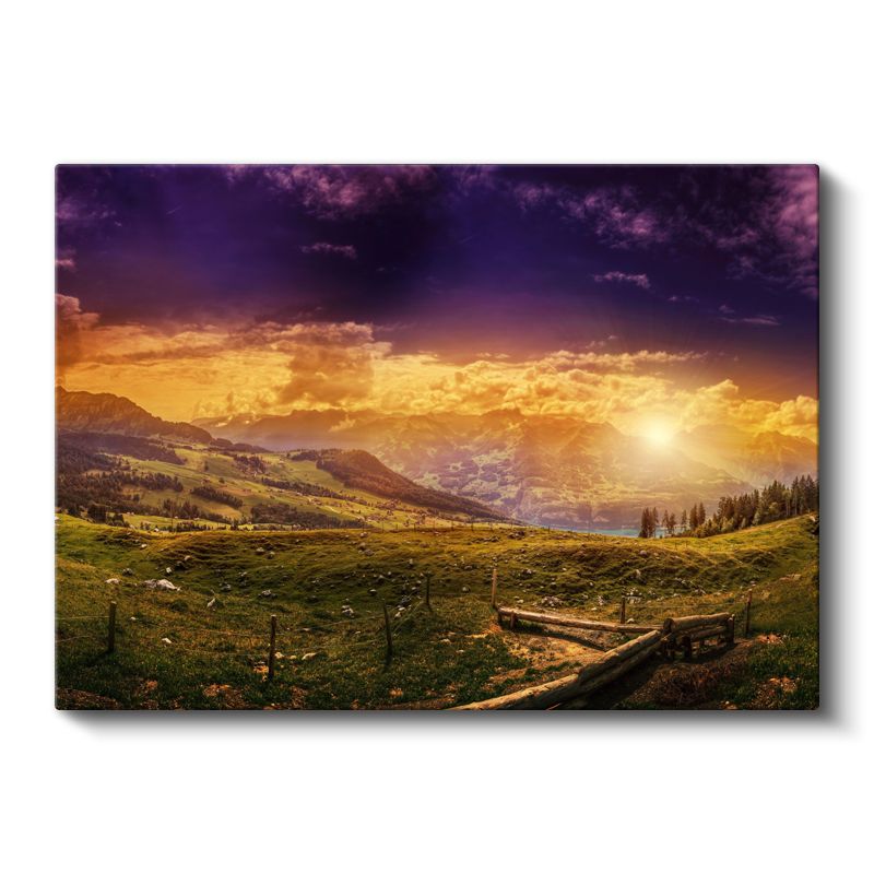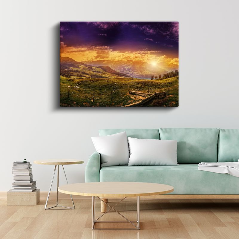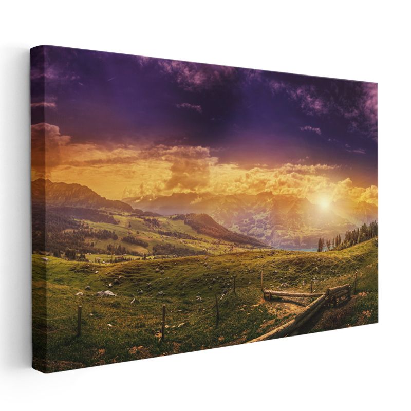 Alp Manzarası - Mor ve Altın Tonlarında Büyüleyici Gün Batımı Kanvas Tablo
