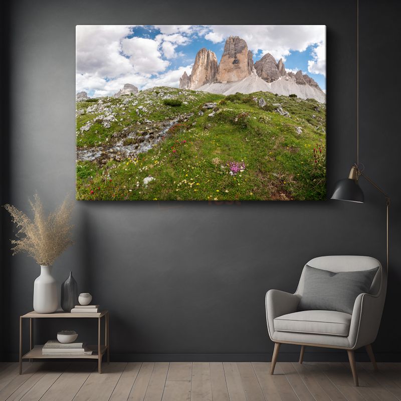Alp Zirvesi - Çiçekli Çayırlar ve Görkemli Dağlar Kanvas Tablo