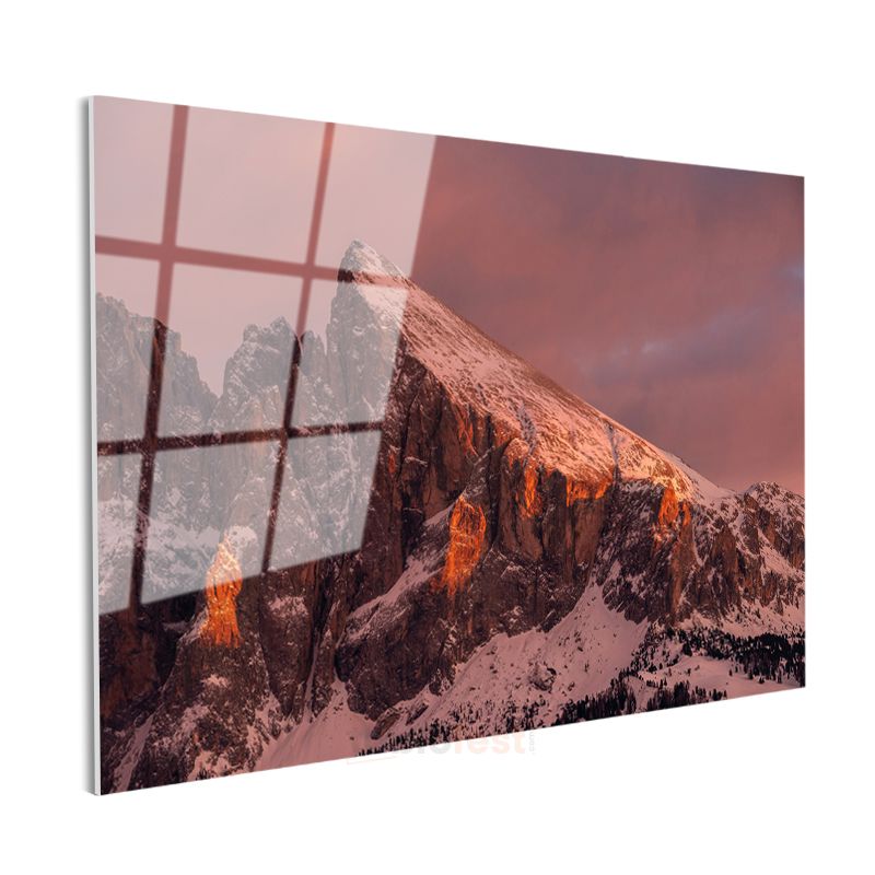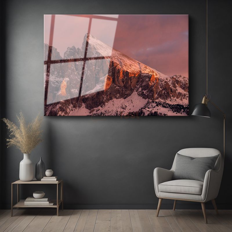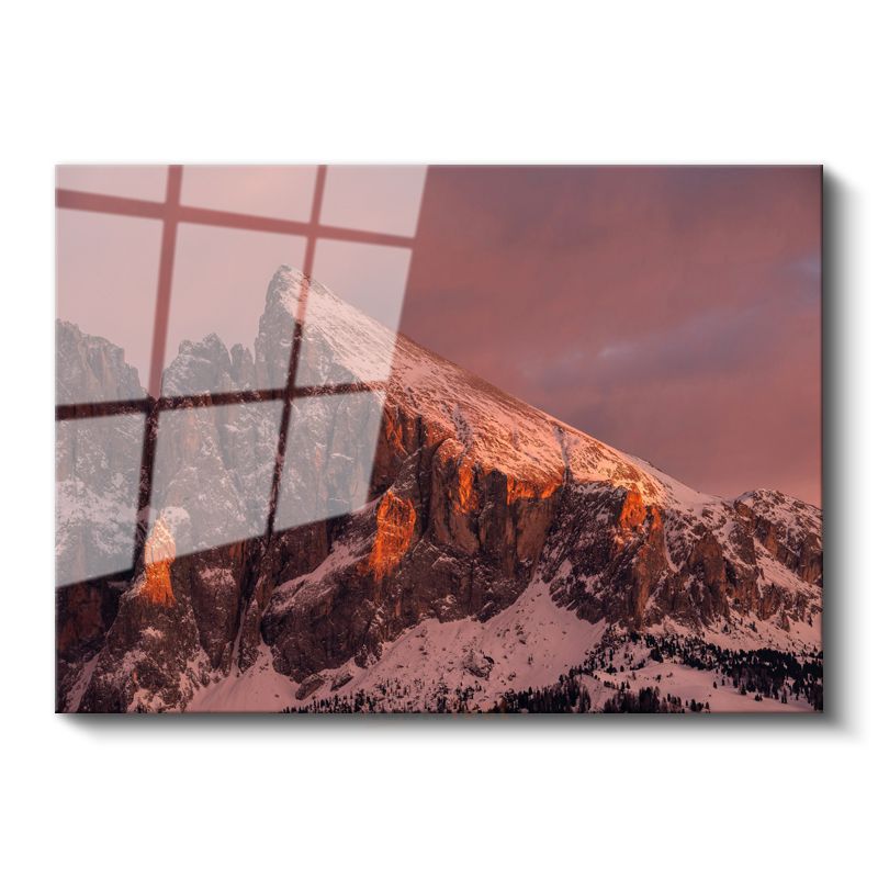 Alp Zirvesi - Gün Batımında Işıldayan Karlı Dağlar Cam Tablo