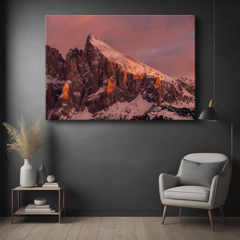 Alp Zirvesi - Gün Batımında Işıldayan Karlı Dağlar Kanvas Tablo