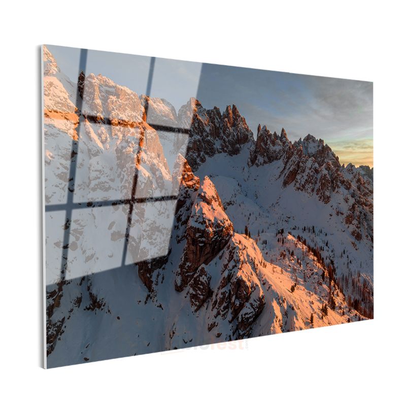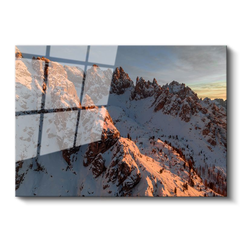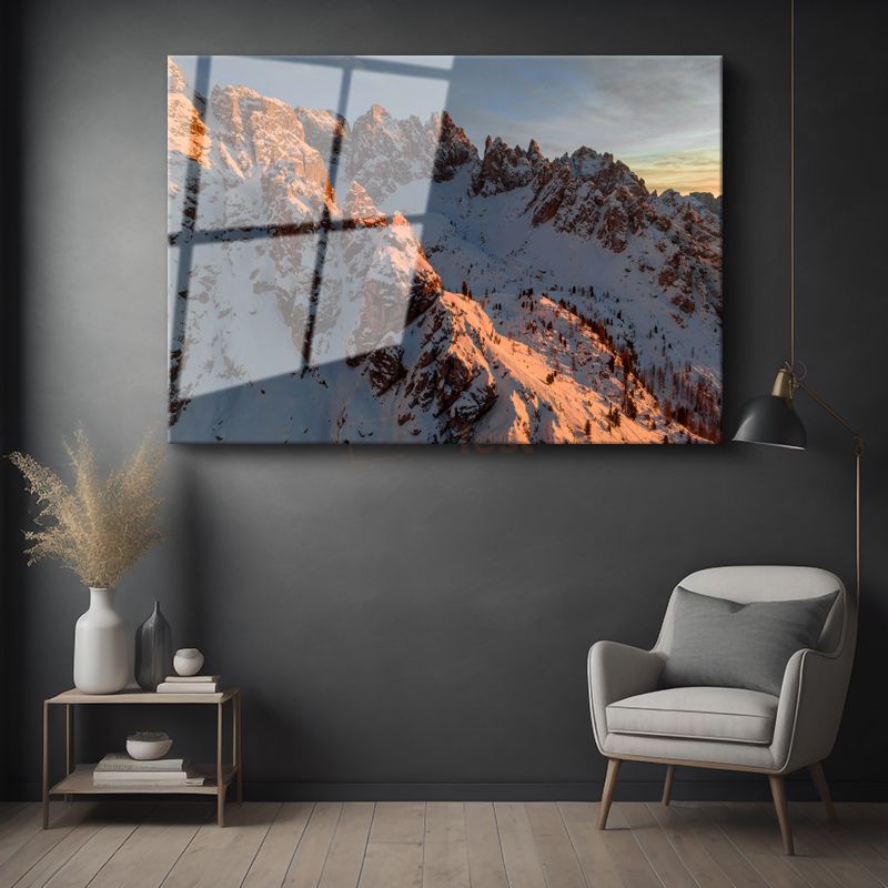 Alp Zirvesi - Gün Batımında Parlayan Karlı Dağlar Cam Tablo