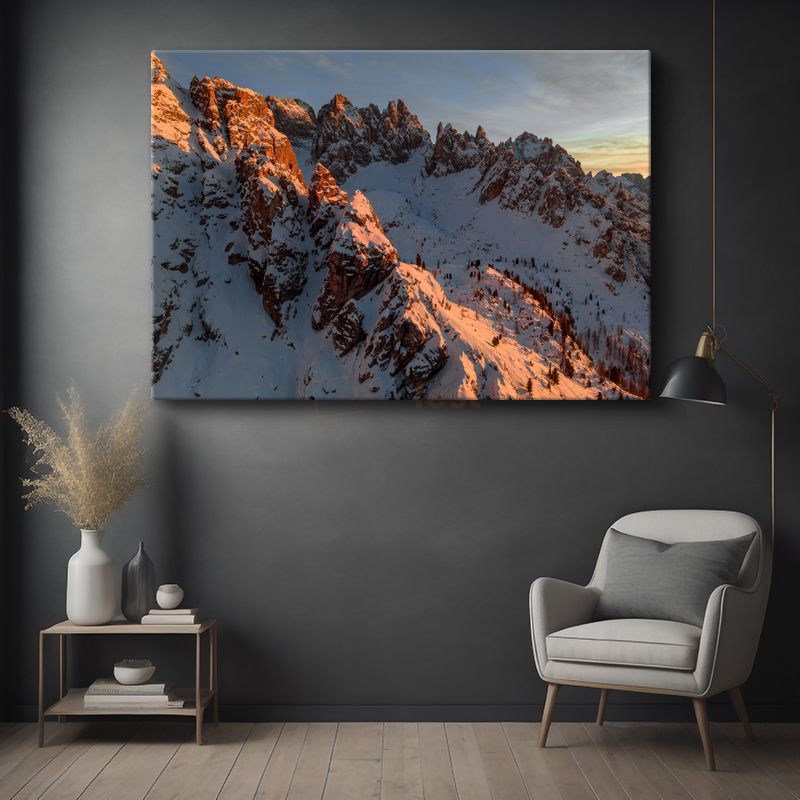 Alp Zirvesi - Gün Batımında Parlayan Karlı Dağlar Kanvas Tablo