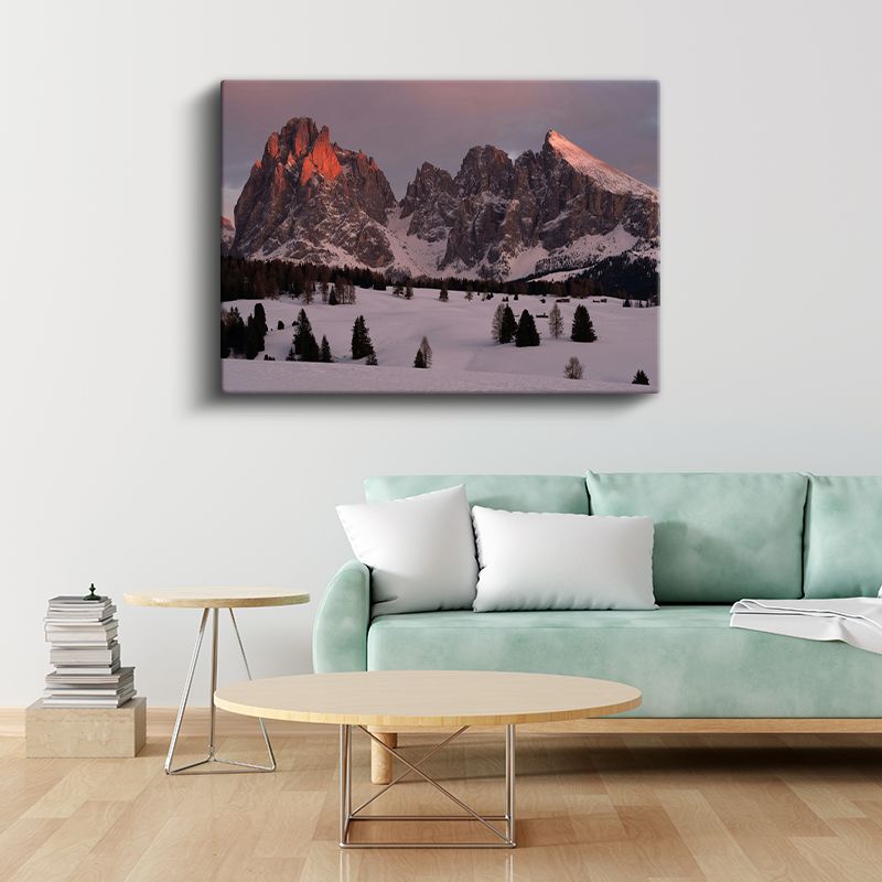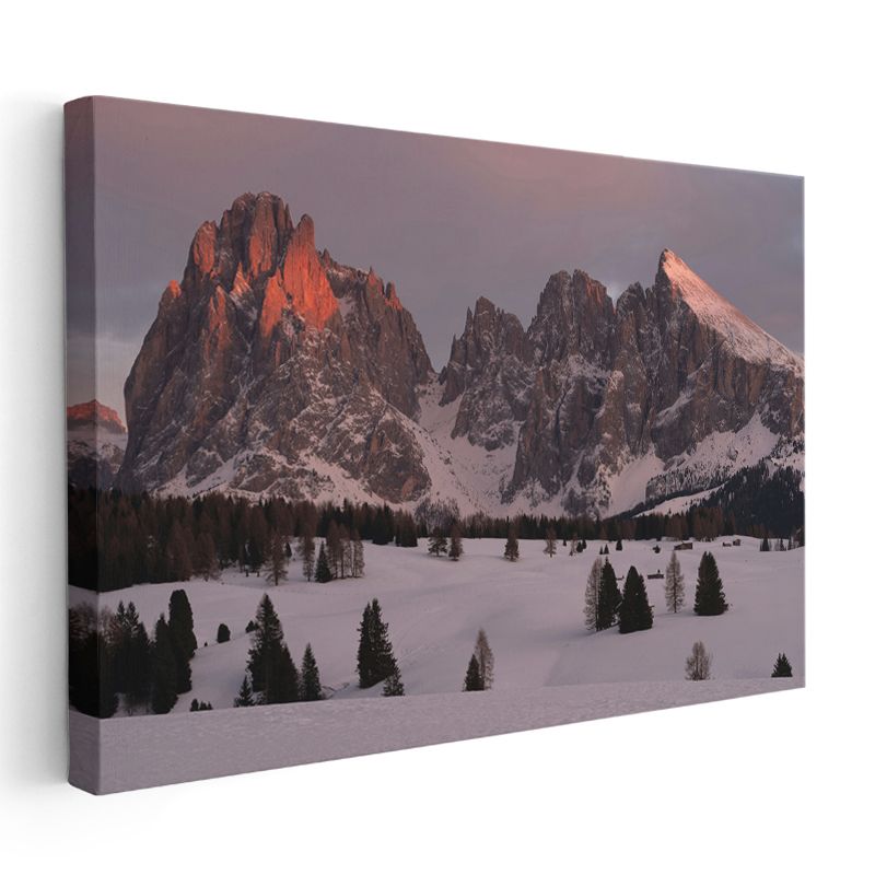 Alp Zirvesi - Gün Doğumunda Karlı Dağ Silsilesi Kanvas Tablo