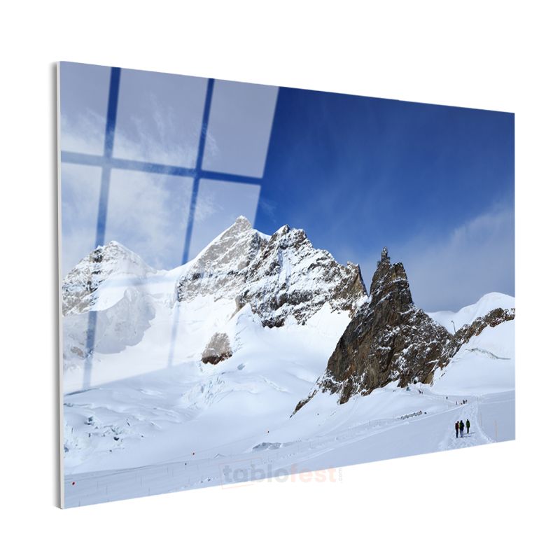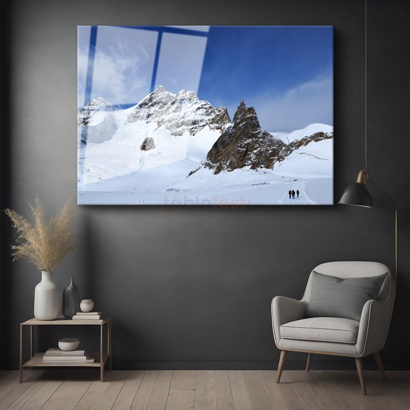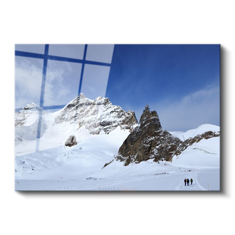 Alp Zirvesi - Karlı Dağlar ve Mavi Gökyüzü Cam Tablo