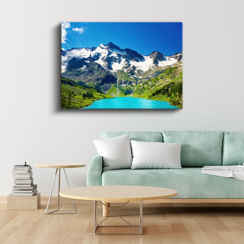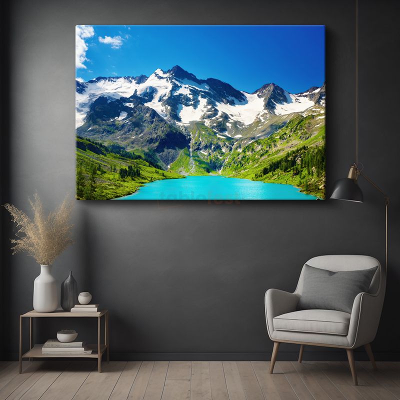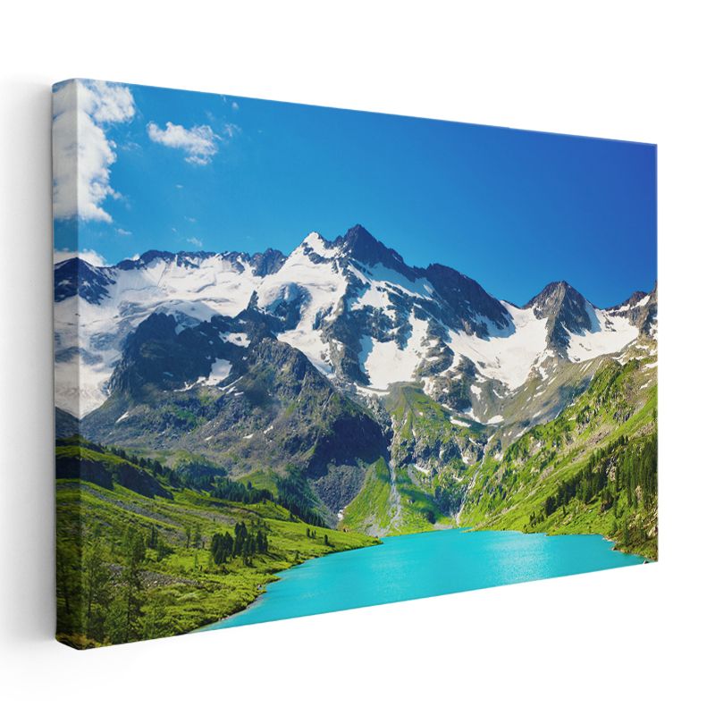 Alp Zirvesi - Turkuaz Göl ve Karlı Dağlar Kanvas Tablo