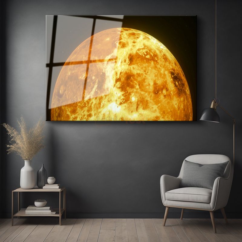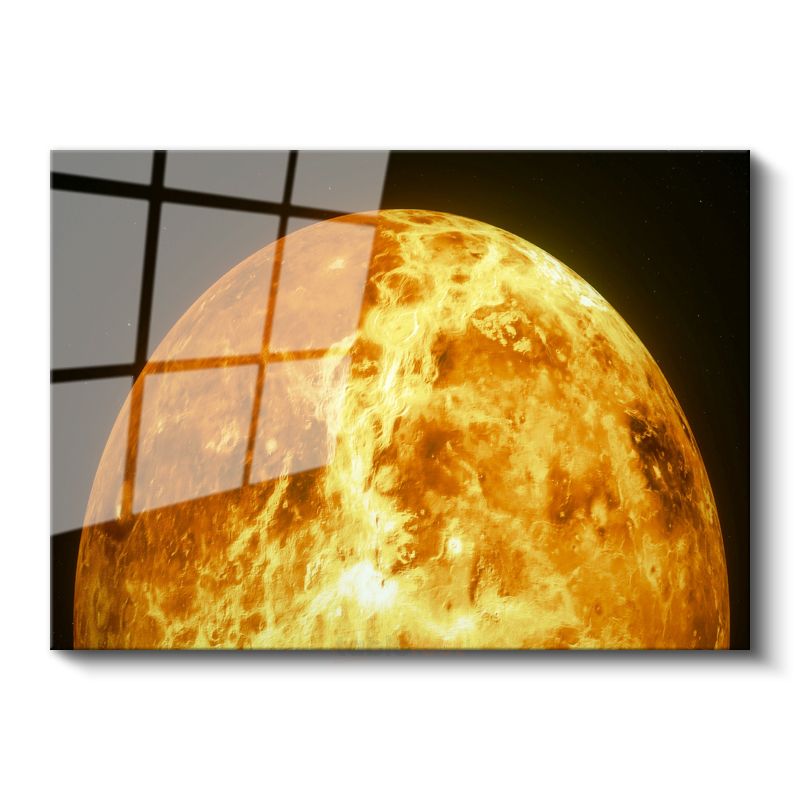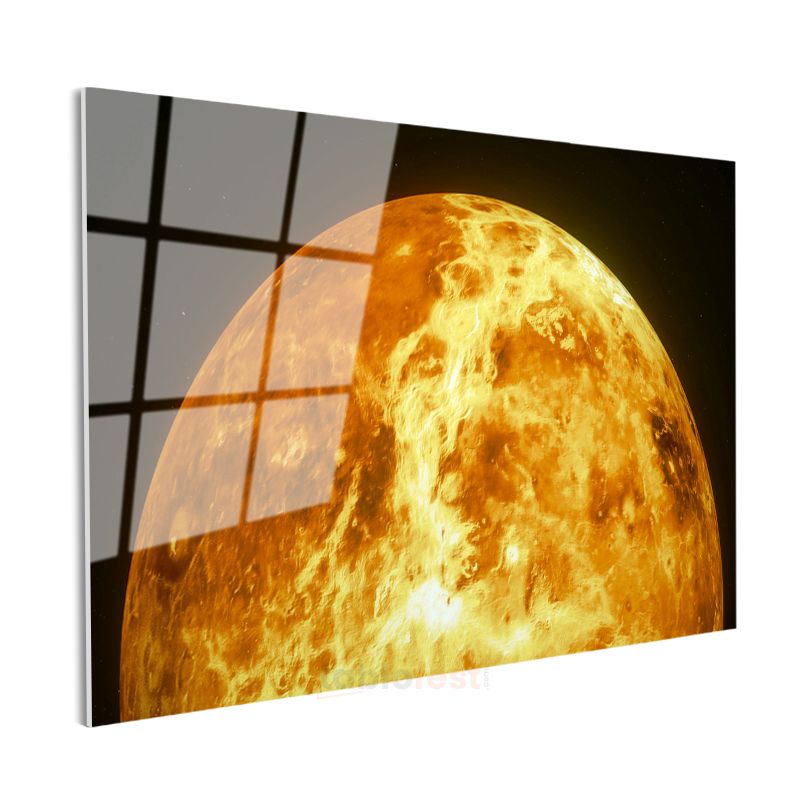 Altın Ay - Detaylı Yüzey Dokusuyla Parlak Dolunay Cam Tablo