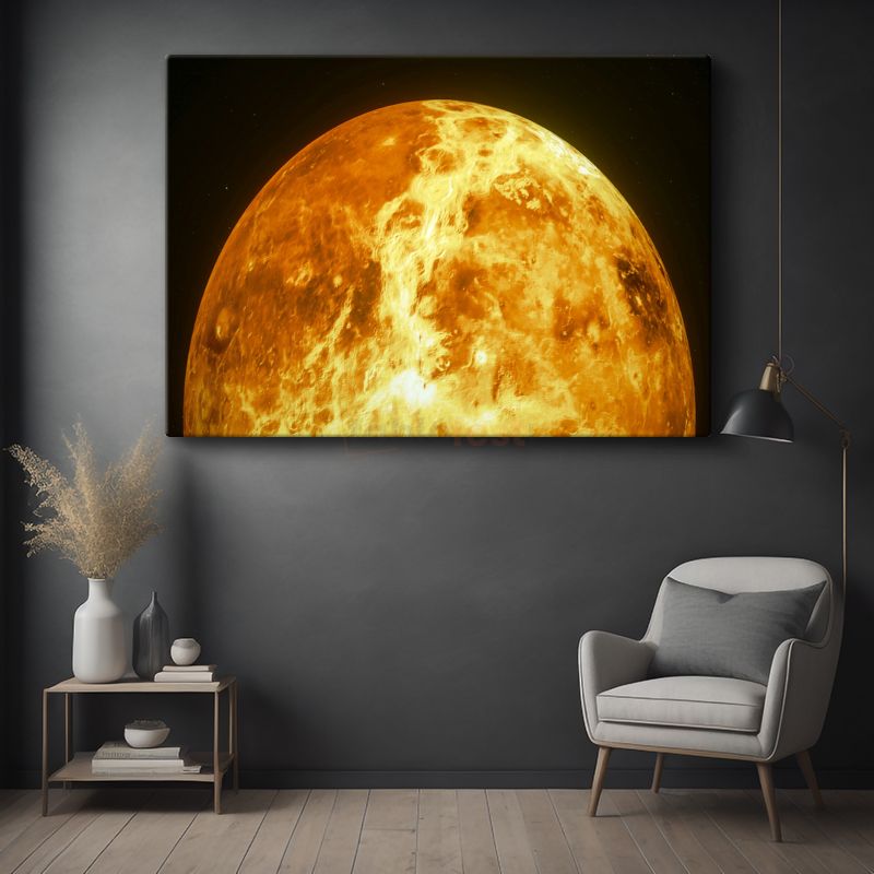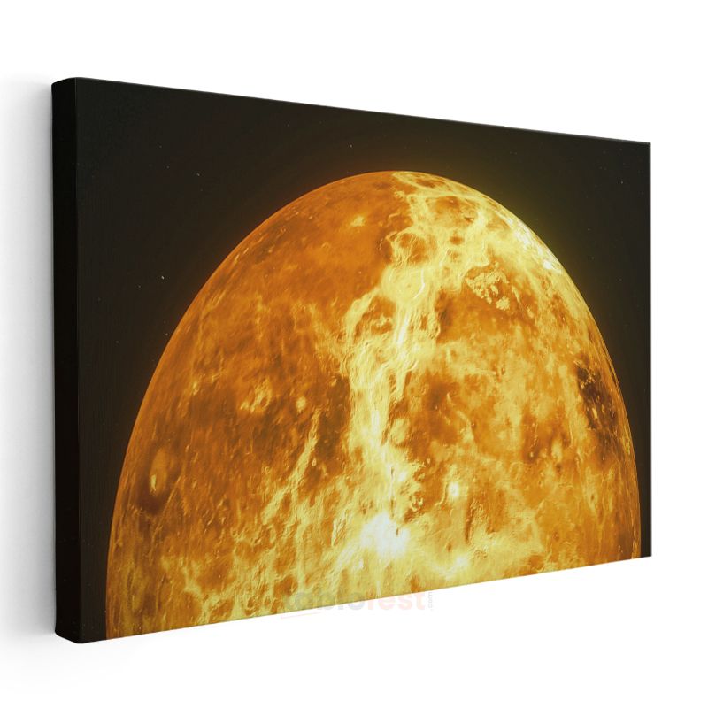 Altın Ay - Detaylı Yüzey Dokusuyla Parlak Dolunay Kanvas Tablo