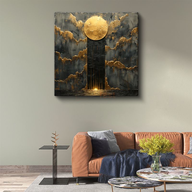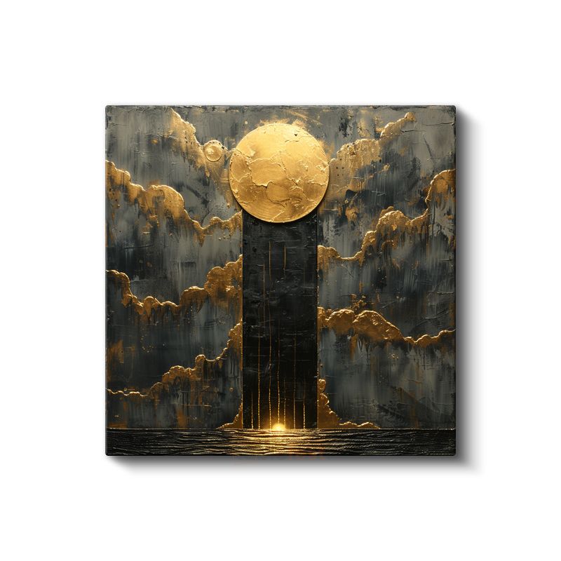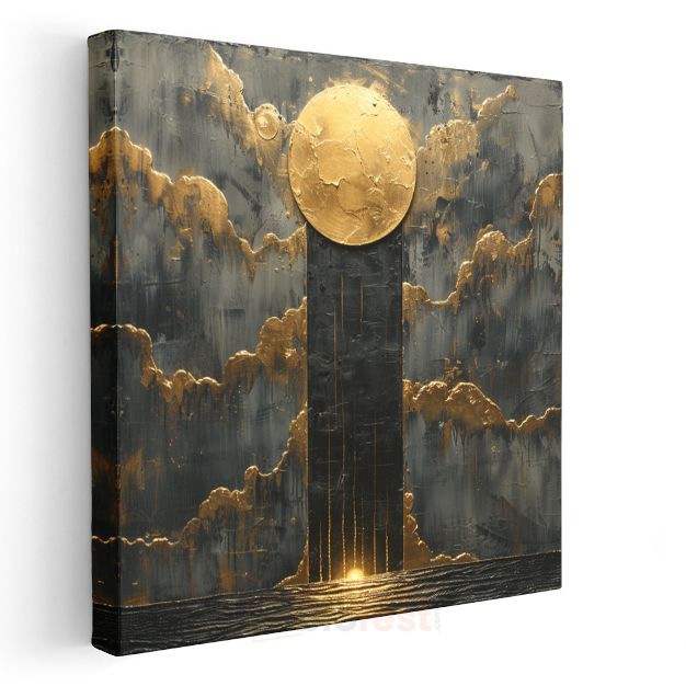 Altın Ay - Dokulu Siyah Zeminde Kozmik Görünüm Kanvas Tablo