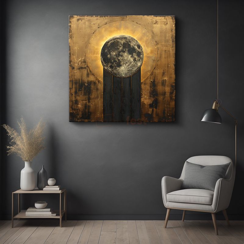 Altın Ay - Mistik Göksel Işık Kanvas Tablo