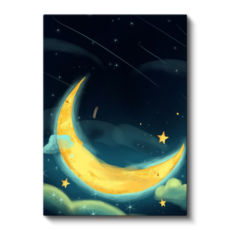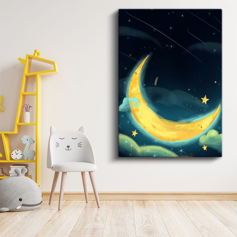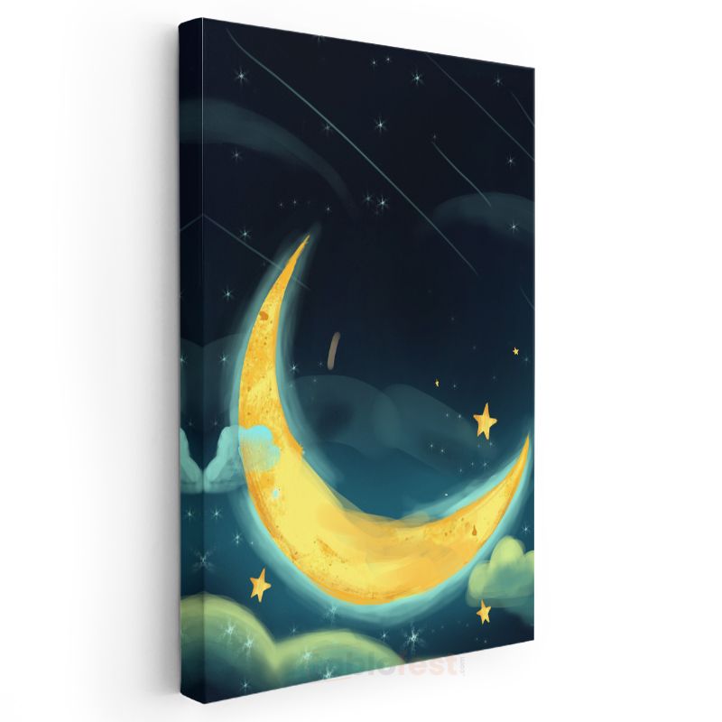 Altın Ay - Yıldızlı Gecenin Büyüsü Kanvas Tablo