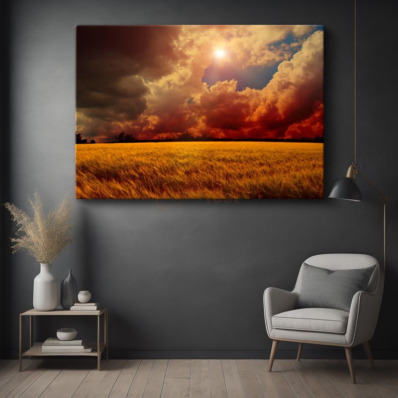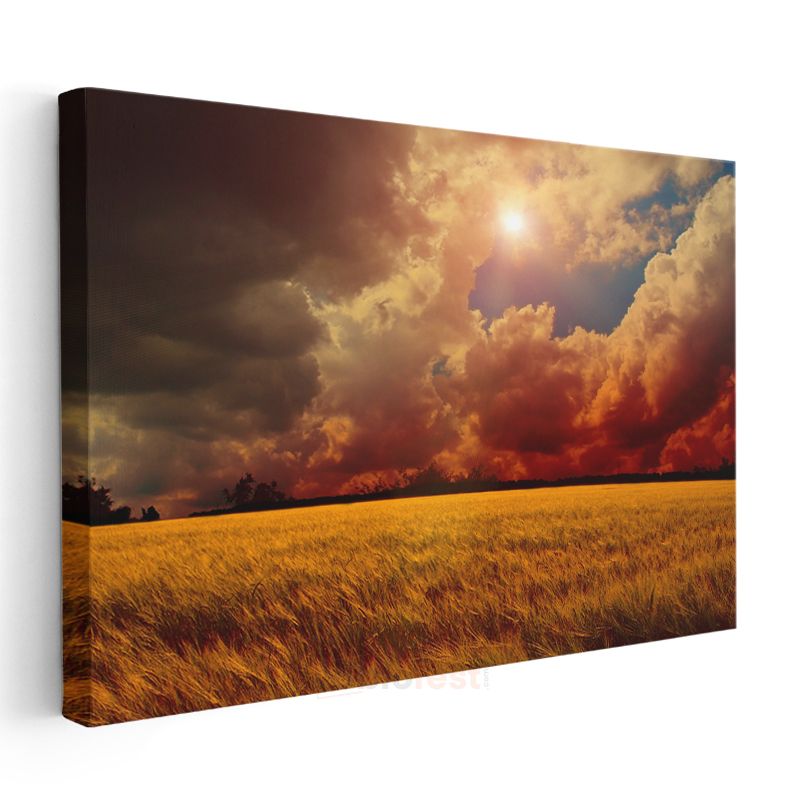 Altın Buğday Tarlası - Dramatik Gün Batımı Kanvas Tablo