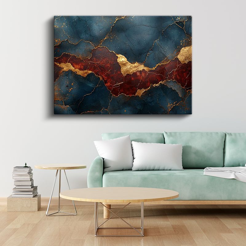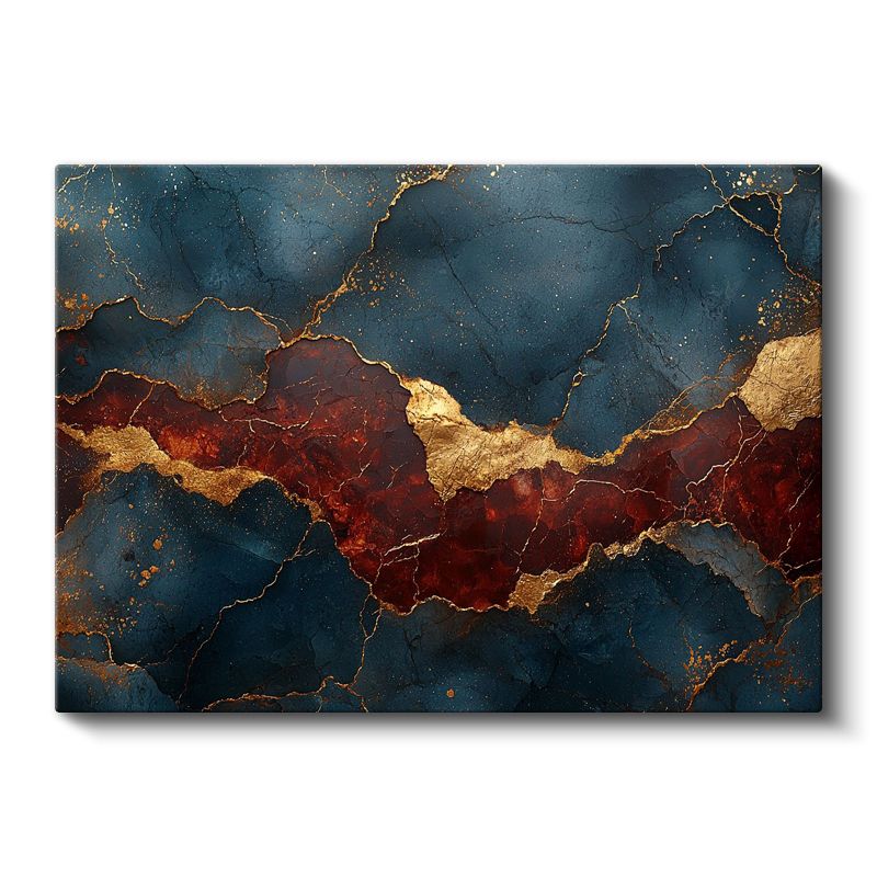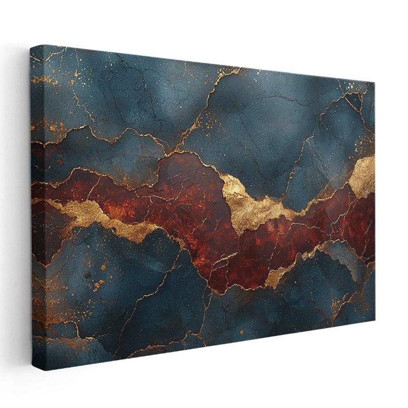 Altın Çatlaklar - Lacivert ve Kırmızı Tonlarında Lüks Soyut Desen Kanvas Tablo
