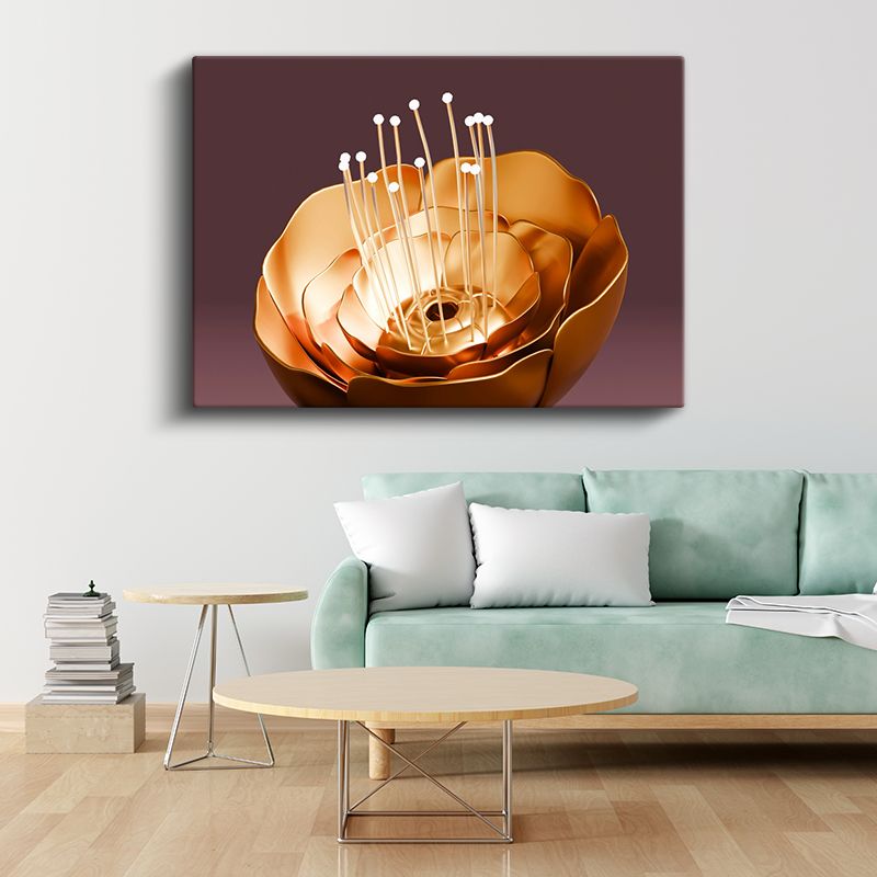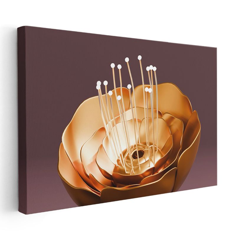 Altın Çiçek - Geometrik Minimalist Heykel Kanvas Tablo