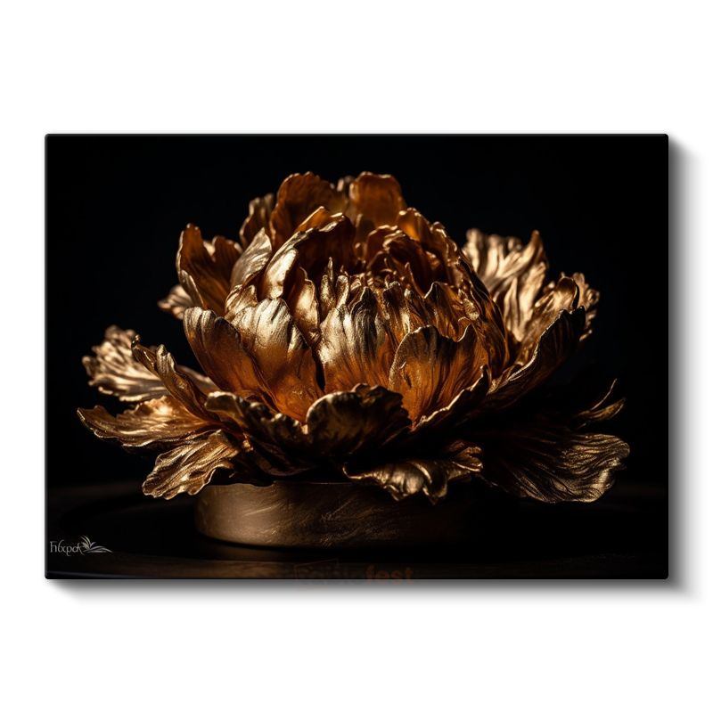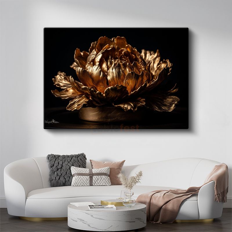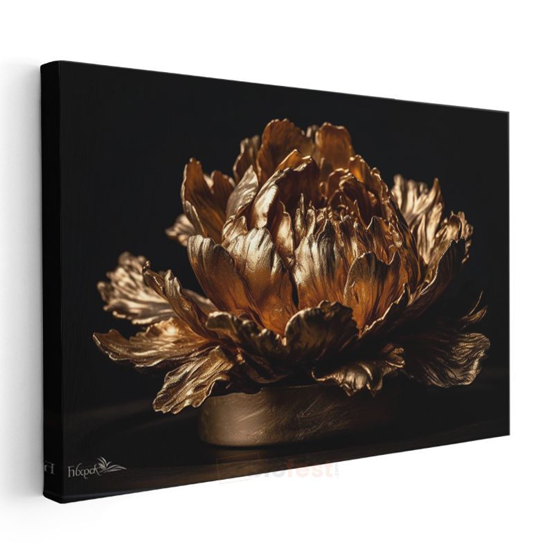 Altın Çiçek - Karanlık Fonda Metalik Şakayık Kanvas Tablo