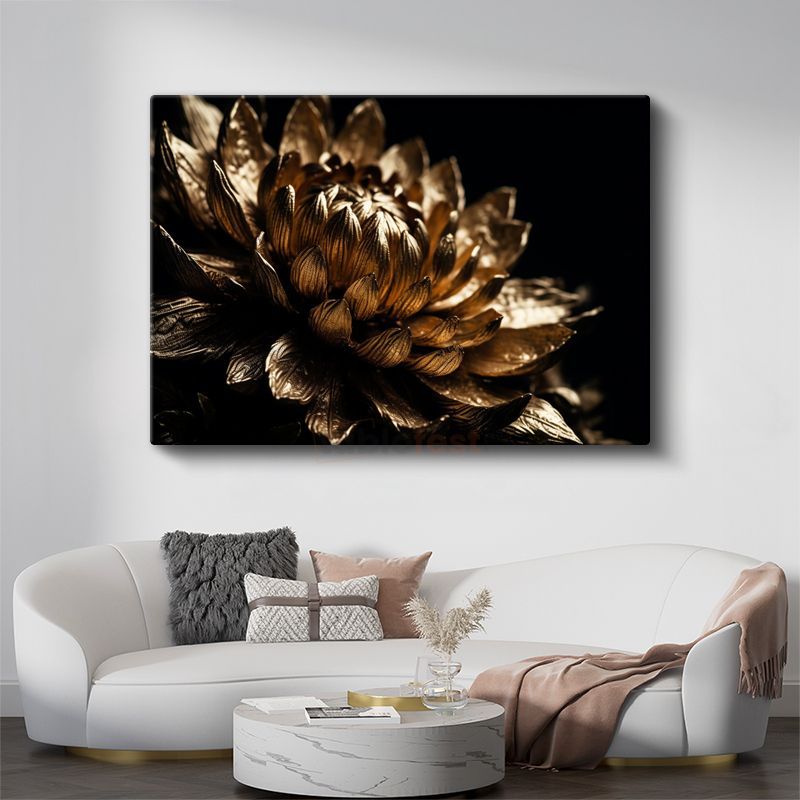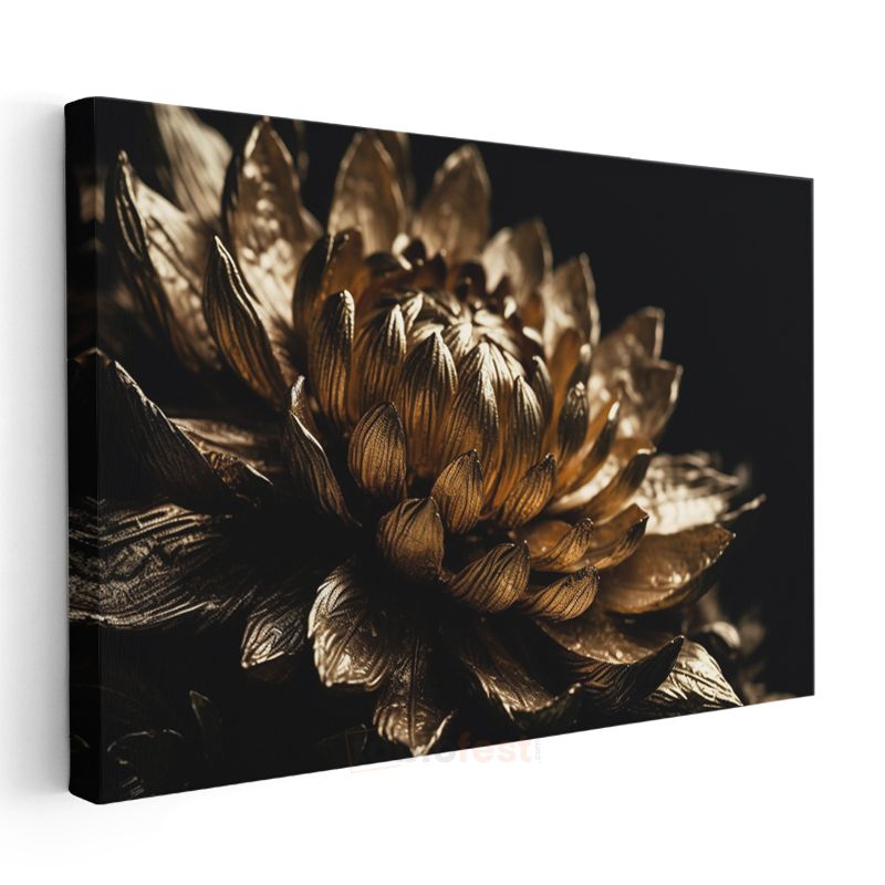 Altın Çiçek - Metalik Görünümlü Sanatsal Tasarım Kanvas Tablo