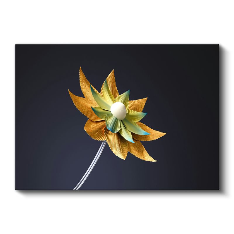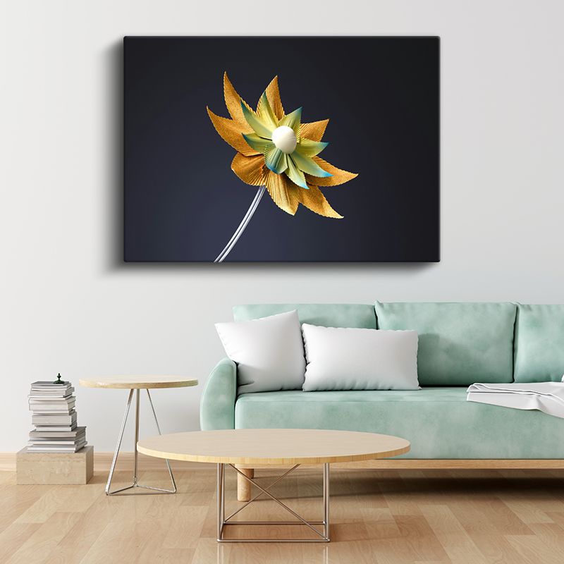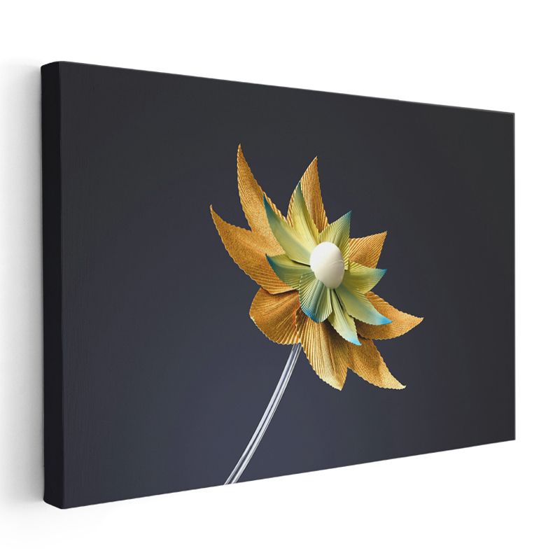 Altın Çiçek - Metalik Tonlarda Stilize Botanik İllüstrasyon Kanvas Tablo