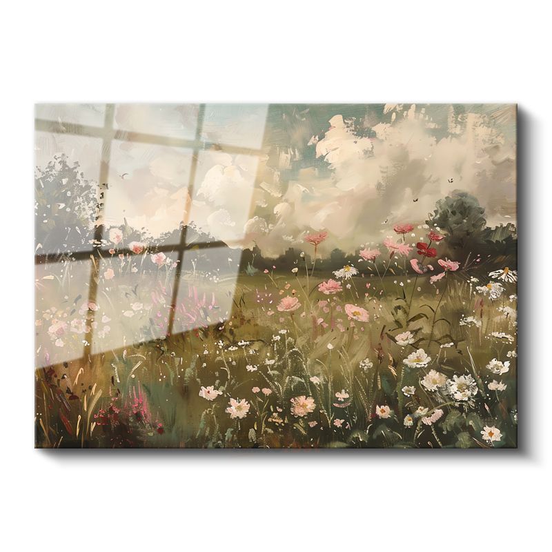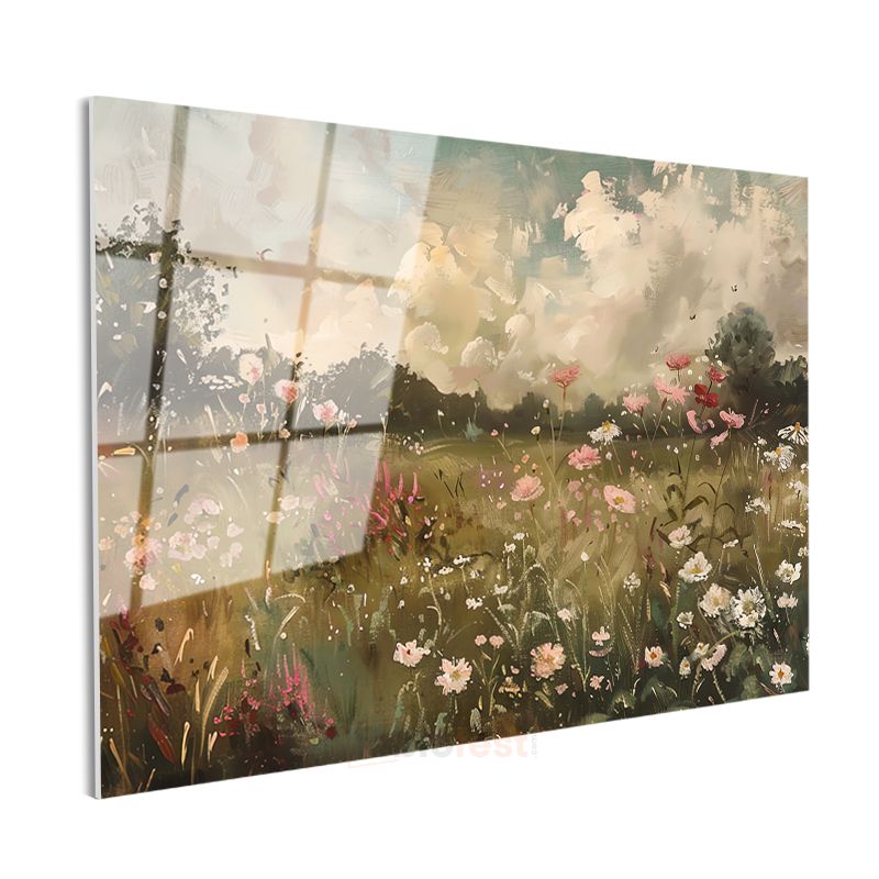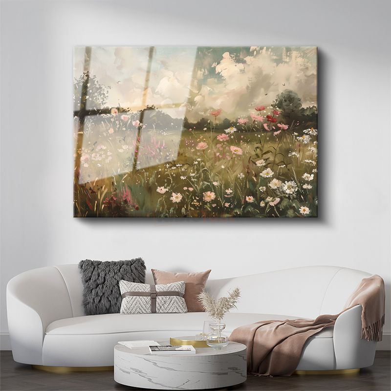 Altın Çiçekler - Siyah Fonda Metalik Çiçek Kompozisyonu Cam Tablo
