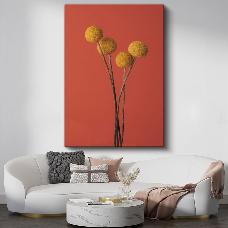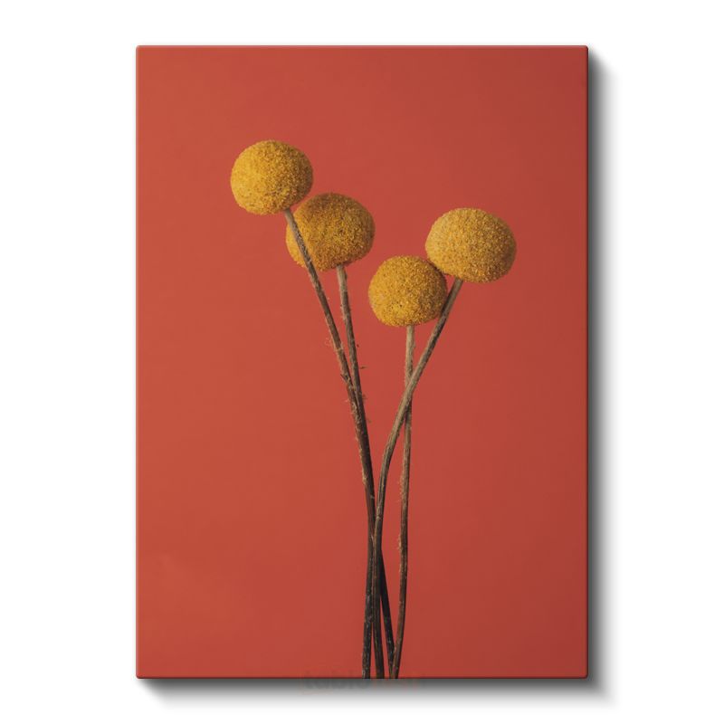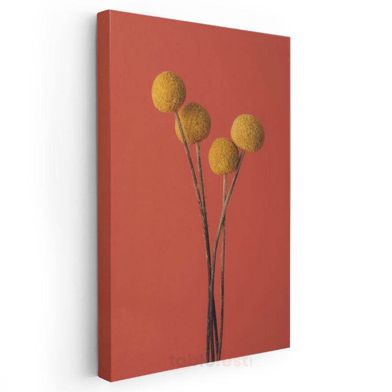 Altın Craspedia - Turuncu Arka Planda Sarı Top Çiçekler Kanvas Tablo