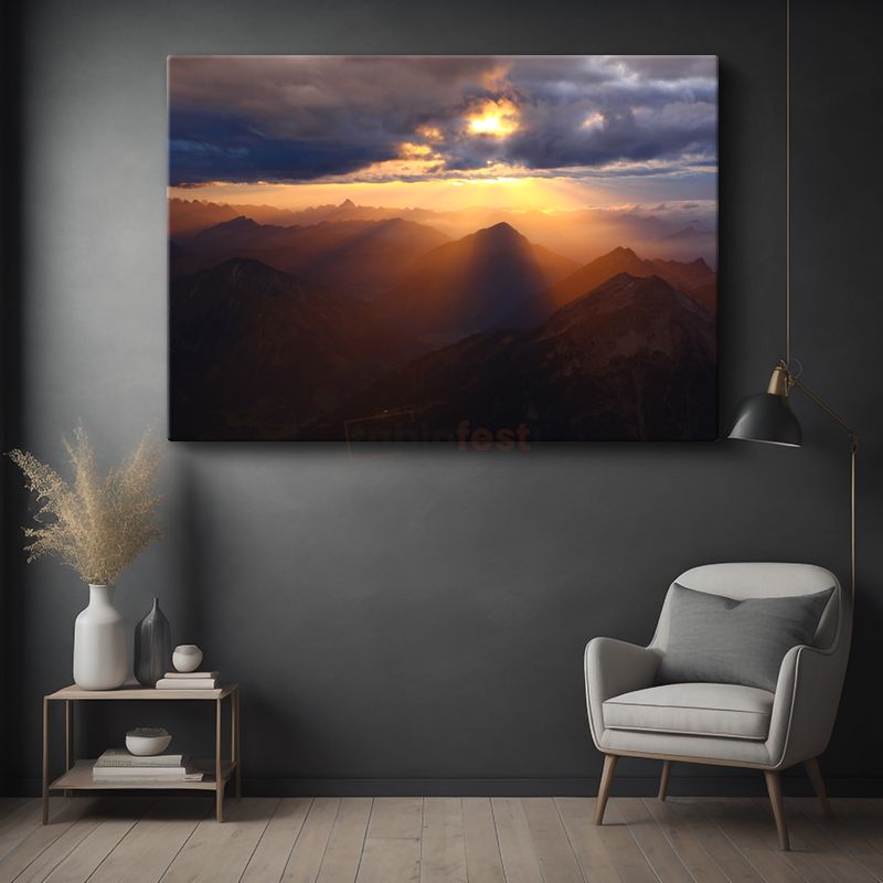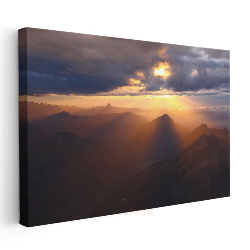 Altın Dağlar - Dramatik Gün Batımı Işıkları Kanvas Tablo